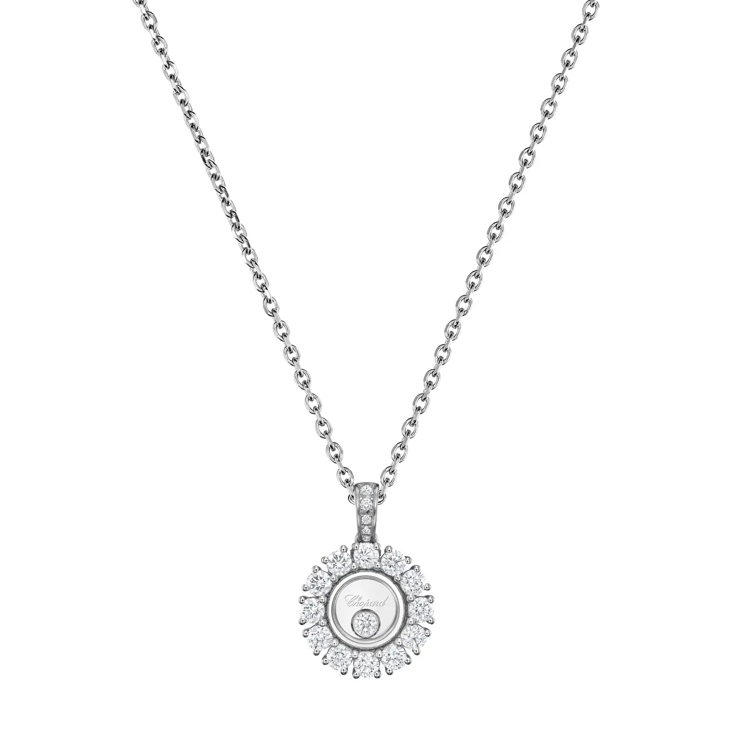 Das Chopard Happy Diamonds Collier 79A609-1001 verkörpert den Höhepunkt zeitloser Eleganz und Schmuckkunst. Gefertigt aus 18 kt Weißgold (750/1000) mit perfekt polierter Oberfläche, wirkt es zart und zugleich hochgradig raffiniert.