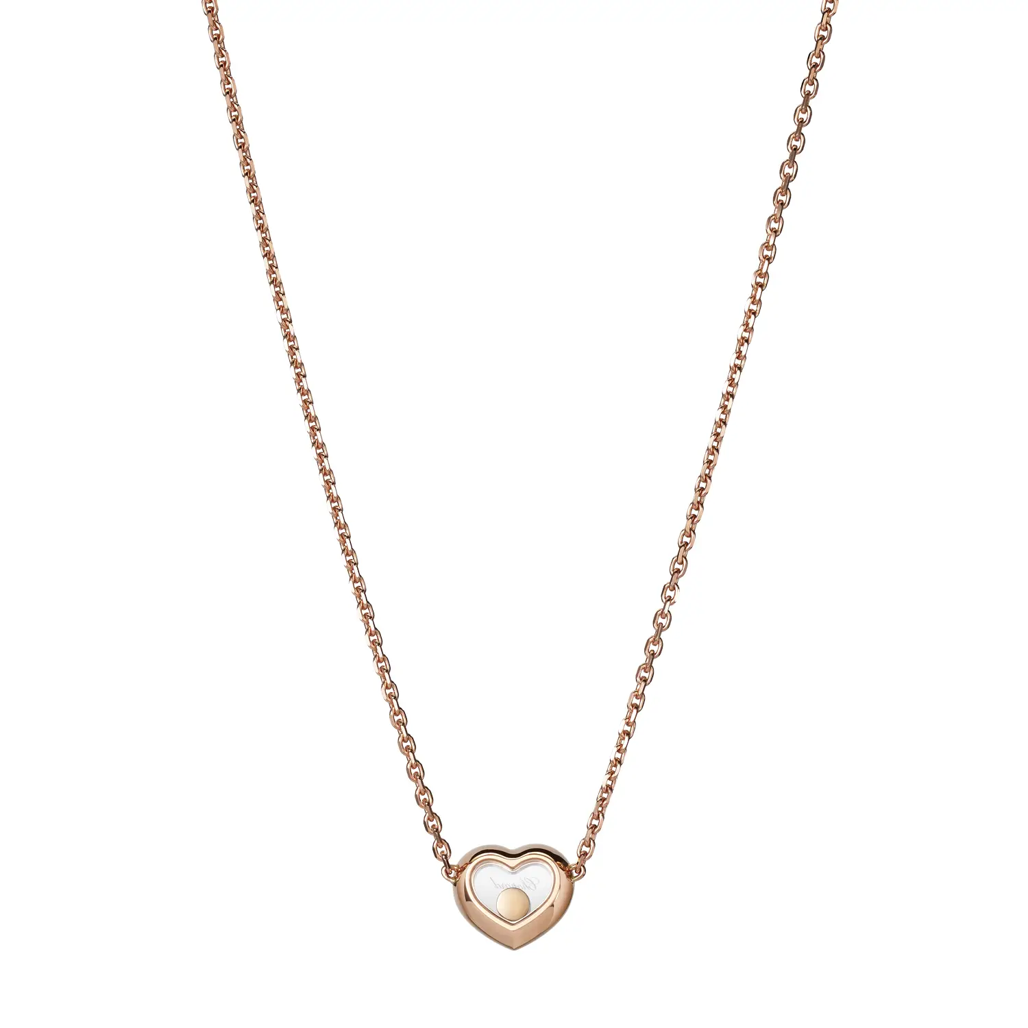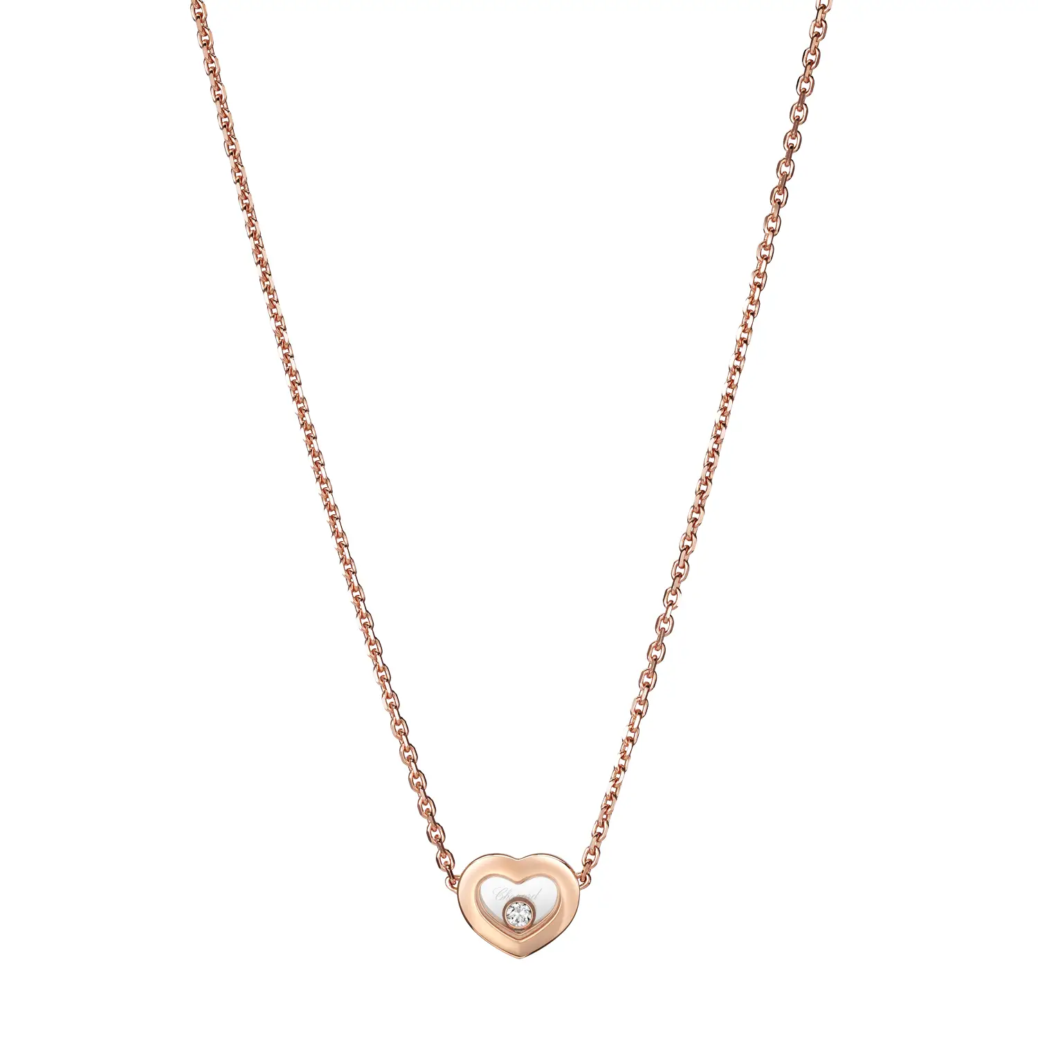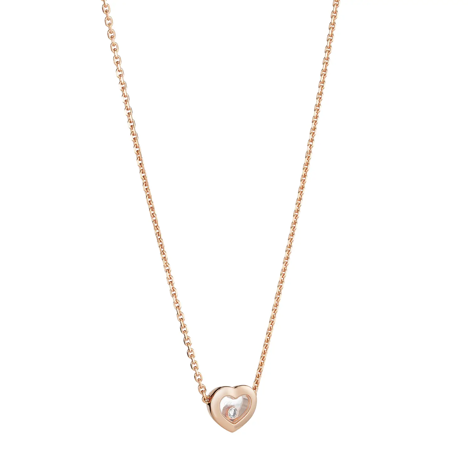 Die Chopard Happy Diamonds Icons 81A054-5001 Halskette verkörpert Leichtigkeit, Licht und Bewegung – die zentralen Werte der Happy Diamonds Kollektion. Gefertigt aus ethischem 18-karätigem Roségold, zeigt sie einen frei beweglichen Diamanten (0,05 ct), der zwischen zwei Saphirgläsern tanzt und bei jeder Bewegung funkelt.
