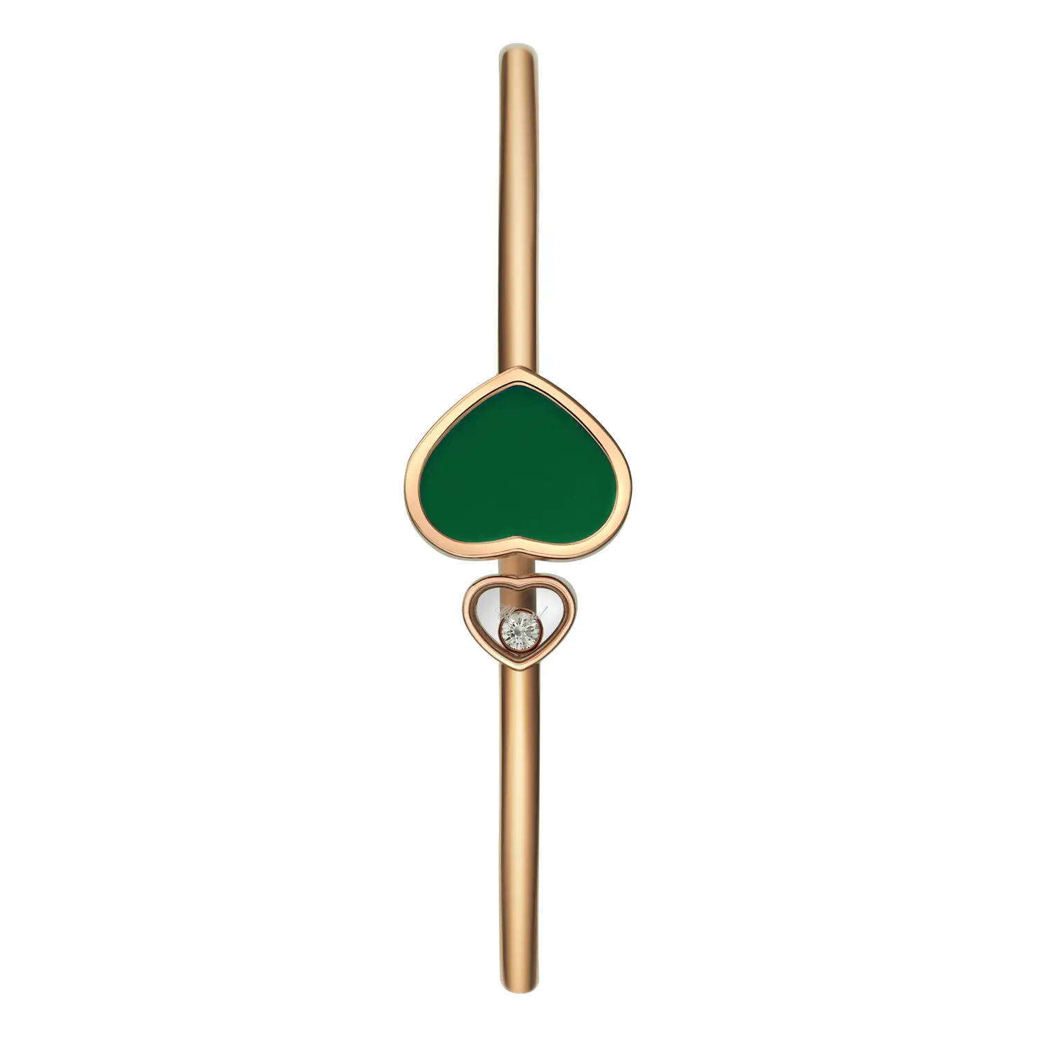 Dieser elegante Armreif aus der Happy Hearts-Kollektion symbolisiert Liebe, Freude und feminine Eleganz. Gefertigt aus 18 kt Roségold, besticht er durch zwei Herzmotive – eines mit glänzendem Onyx, das andere mit einem frei beweglichen Diamanten, der ein faszinierendes Lichtspiel erzeugt. Dieses ikonische Design von Chopard strahlt positive Energie und zeitlose Anmut aus.