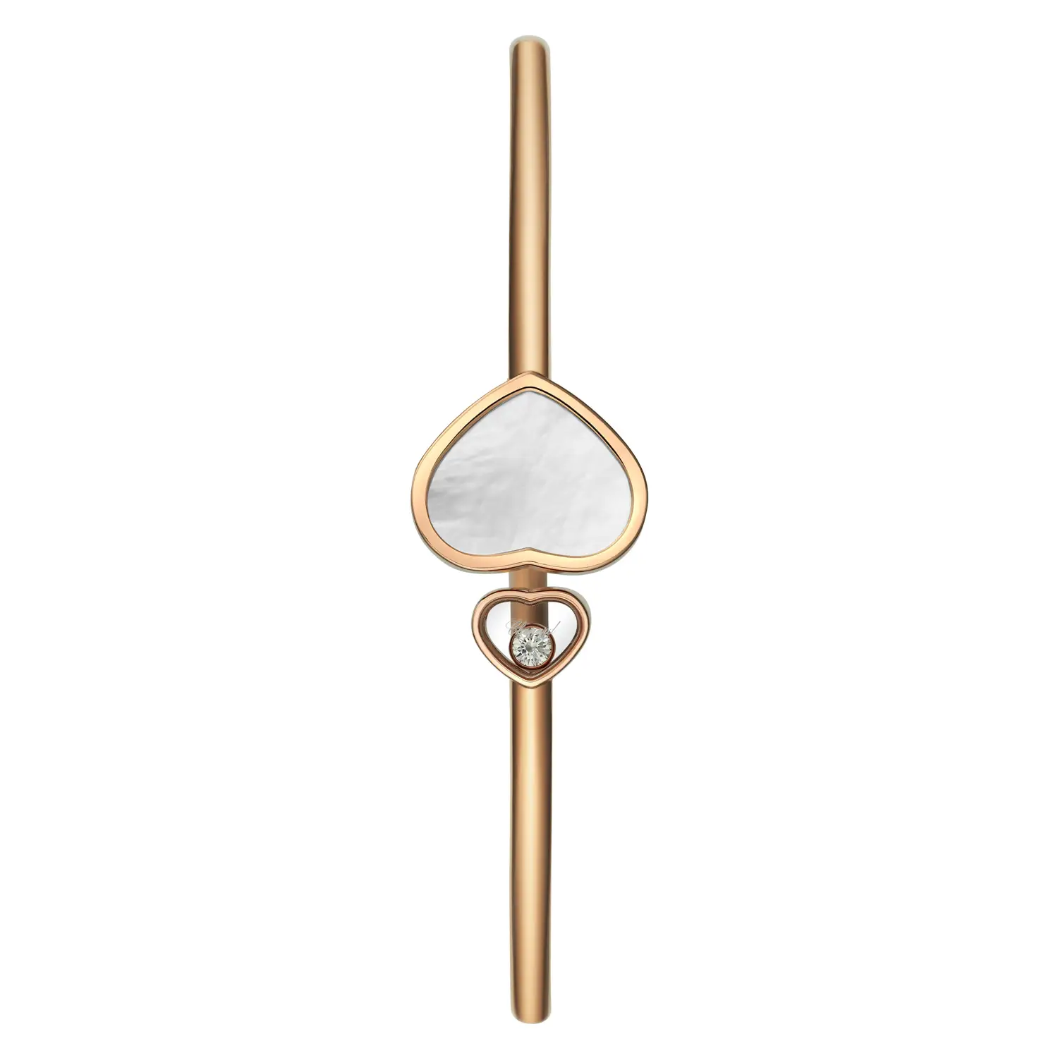 Das Chopard Happy Hearts 857482-5302 Armband symbolisiert Freude, Liebe und Weiblichkeit – die zentralen Werte der Happy Hearts Kollektion. Gefertigt aus ethischem 18-karätigem Roségold, ist es mit einem Perlmutt-Herz und einem Diamanten (0,05 ct) verziert, die sanftes Licht und Eleganz vereinen.