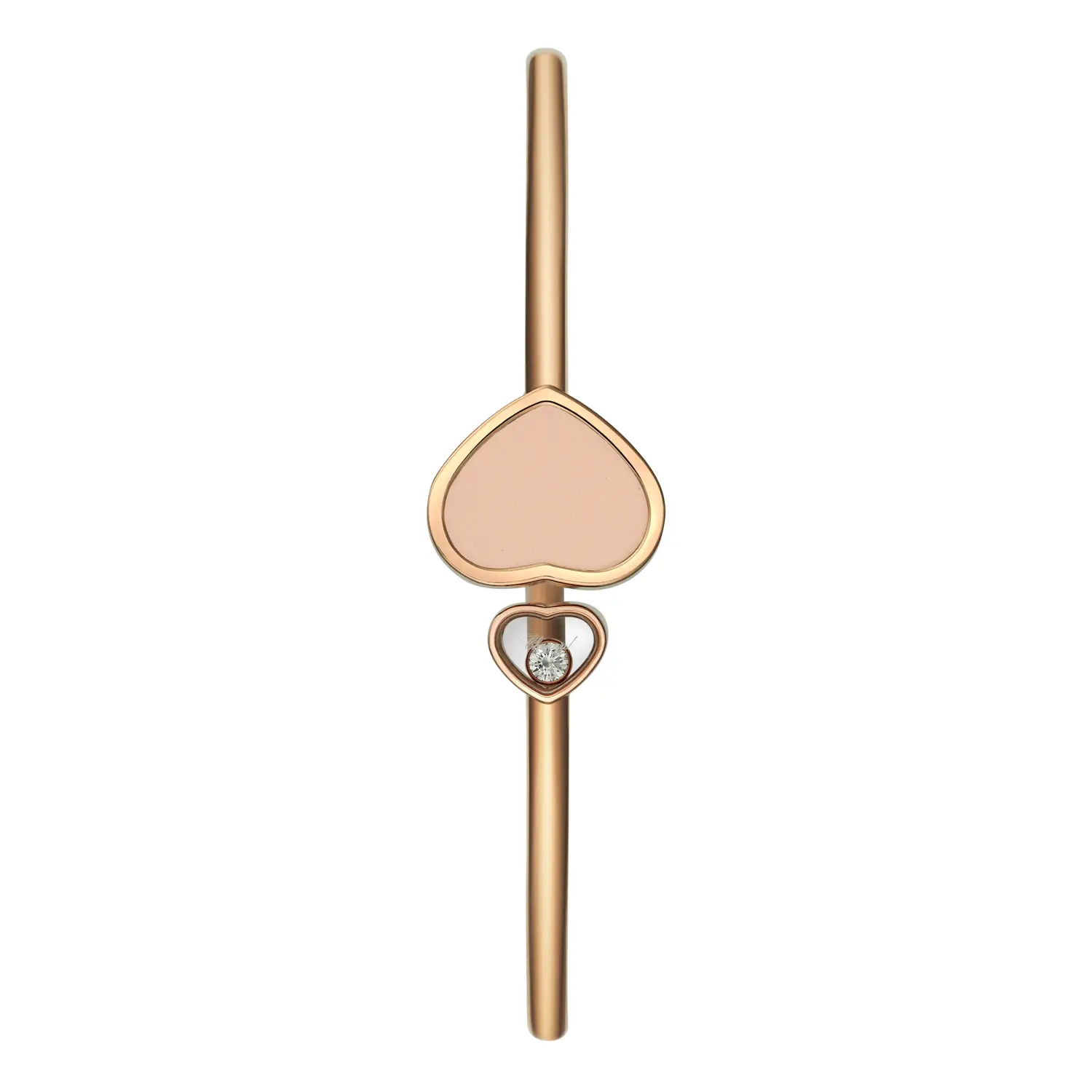 Dieser bezaubernde Armreif aus der Happy Hearts-Kollektion vereint Romantik, Sanftheit und das ikonische Design von Chopard. Gefertigt aus 18 kt Roségold, ist er mit einem Herz aus rosafarbenem Stein und einem frei beweglichen Diamanten von ca. 0,05 ct verziert – ein Ausdruck von Weiblichkeit und Lebensfreude. Das Zusammenspiel der zarten Rosétöne und des Diamantglanzes verleiht dem Schmuckstück ein strahlendes, harmonisches Flair.