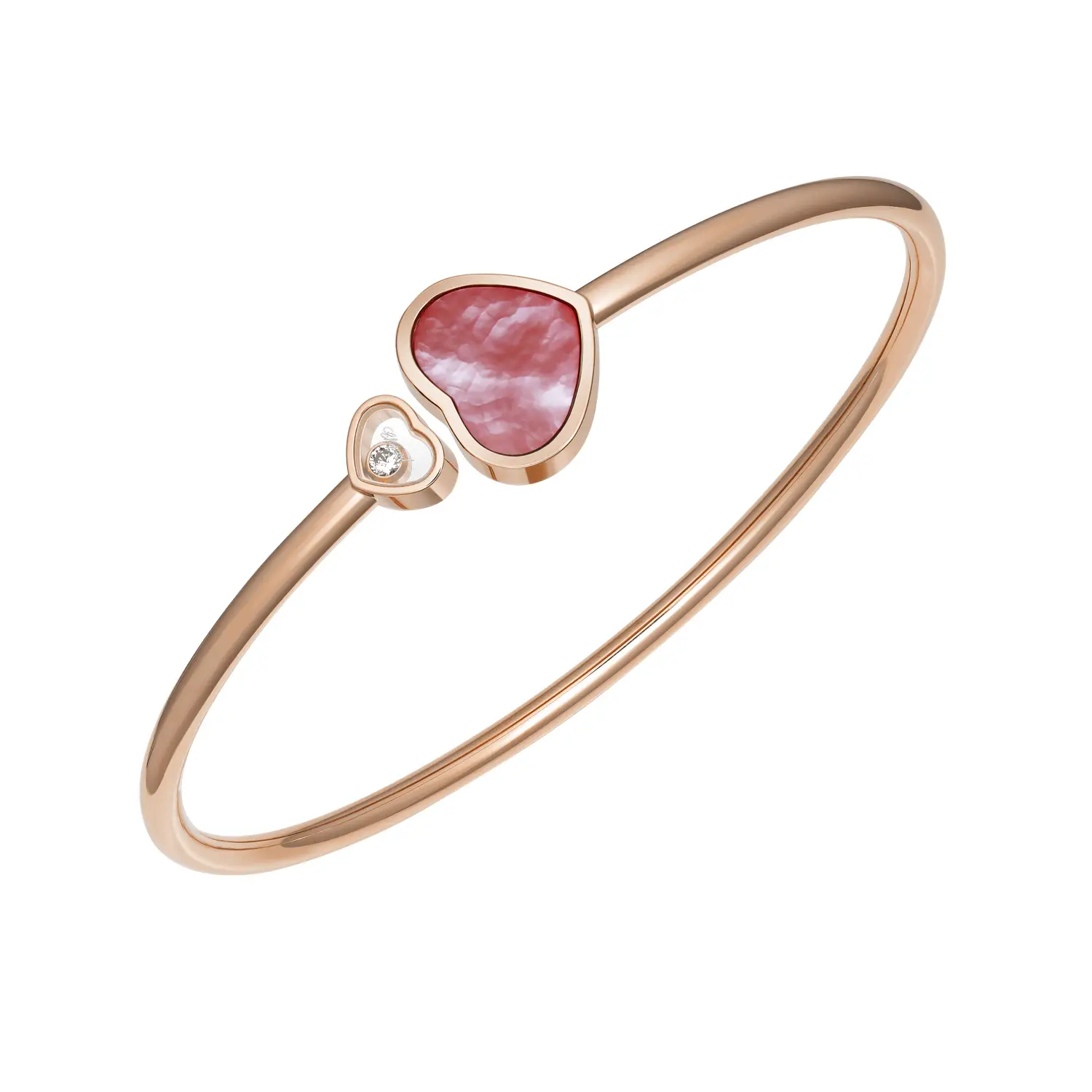 Dieser elegante Armreif aus der Happy Hearts-Kollektion steht für Freude, Liebe und feminine Eleganz. Gefertigt aus 18 kt Roségold, ist er mit einem Herz aus rotem Stein und einem frei beweglichen Diamanten von ca. 0,05 ct verziert – ein Symbol für Optimismus und Leidenschaft. Die glatte Oberfläche und klaren Linien betonen seinen luxuriösen Charakter.