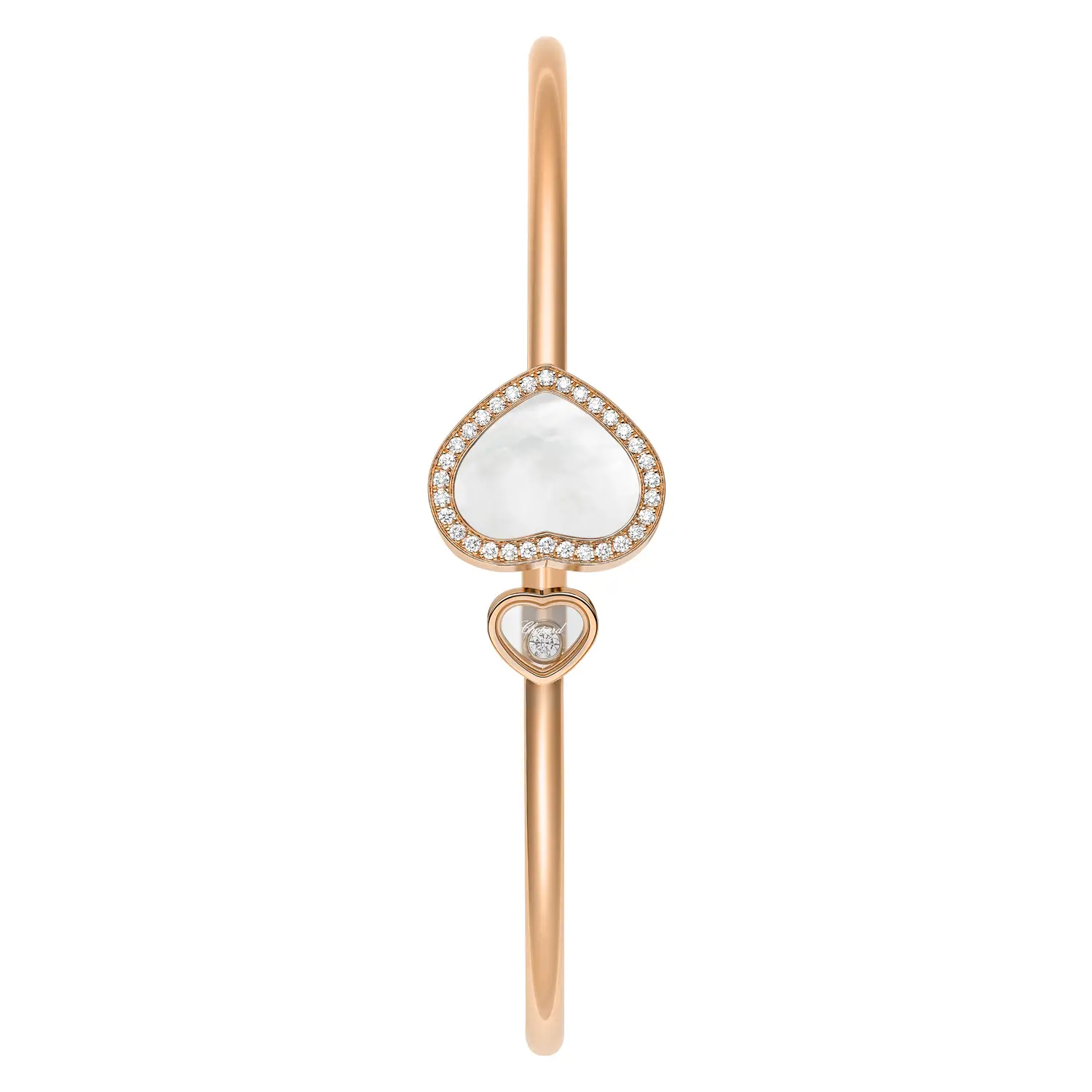 Diamanten mit einem Gesamtgewicht von ca. 0,19 ct, Farbe F–G und Reinheit IF–VVS, unterstreichen die unverkennbare Handschrift von Chopard, bekannt für seine Liebe zum Detail und meisterhafte Verarbeitung. Das elegante Bangle-Design im modernen Minimalismus passt sich dem Handgelenk natürlich an, während Flexibilität und perfekte Proportionen hohen Tragekomfort im Alltag garantieren. Erhältlich in Größe M (ca. 17 cm), ist es ein universelles und zeitloses Schmuckstück.