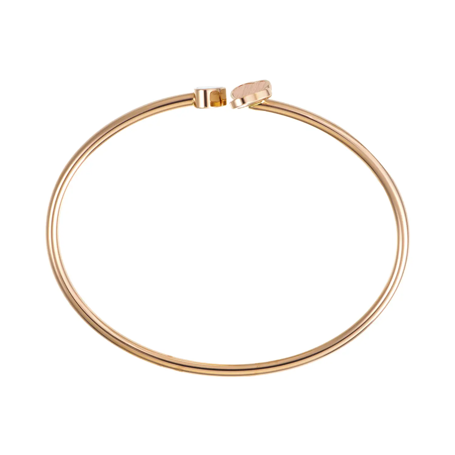 Das Chopard Happy Hearts Bangle 85A083-5702 ist ein wunderschön stilvolles Schmuckstück, das minimalistische Eleganz mit einem strahlenden Diamant-Detail perfekt verbindet. Diese exklusive Bangle-Manschette ist aus 18 Karat Roségold (750/1000) mit polierter Oberfläche gefertigt, wodurch ihr warmer, raffinierter Ton und die präzise Handwerkskunst besonders zur Geltung kommen.