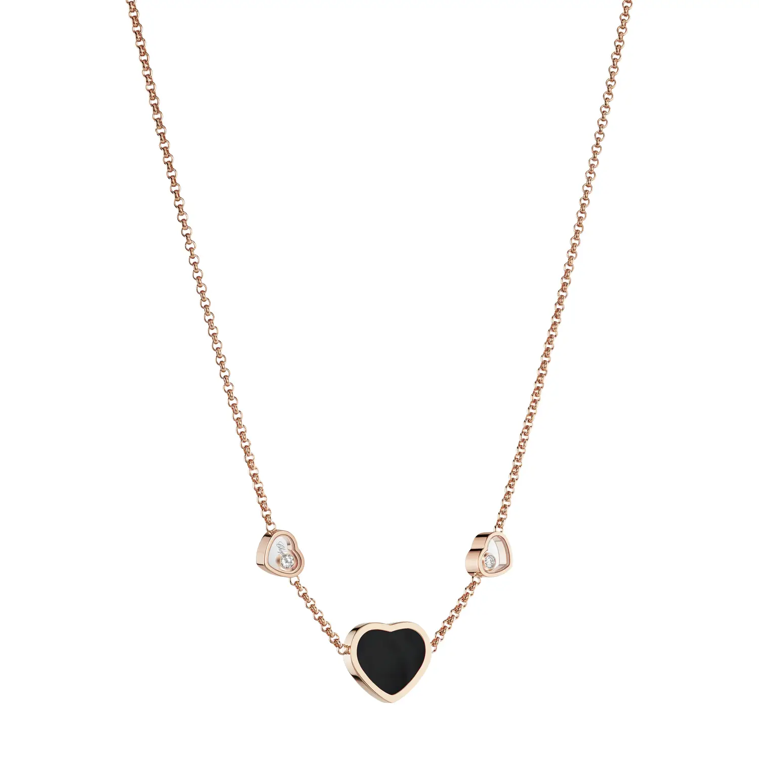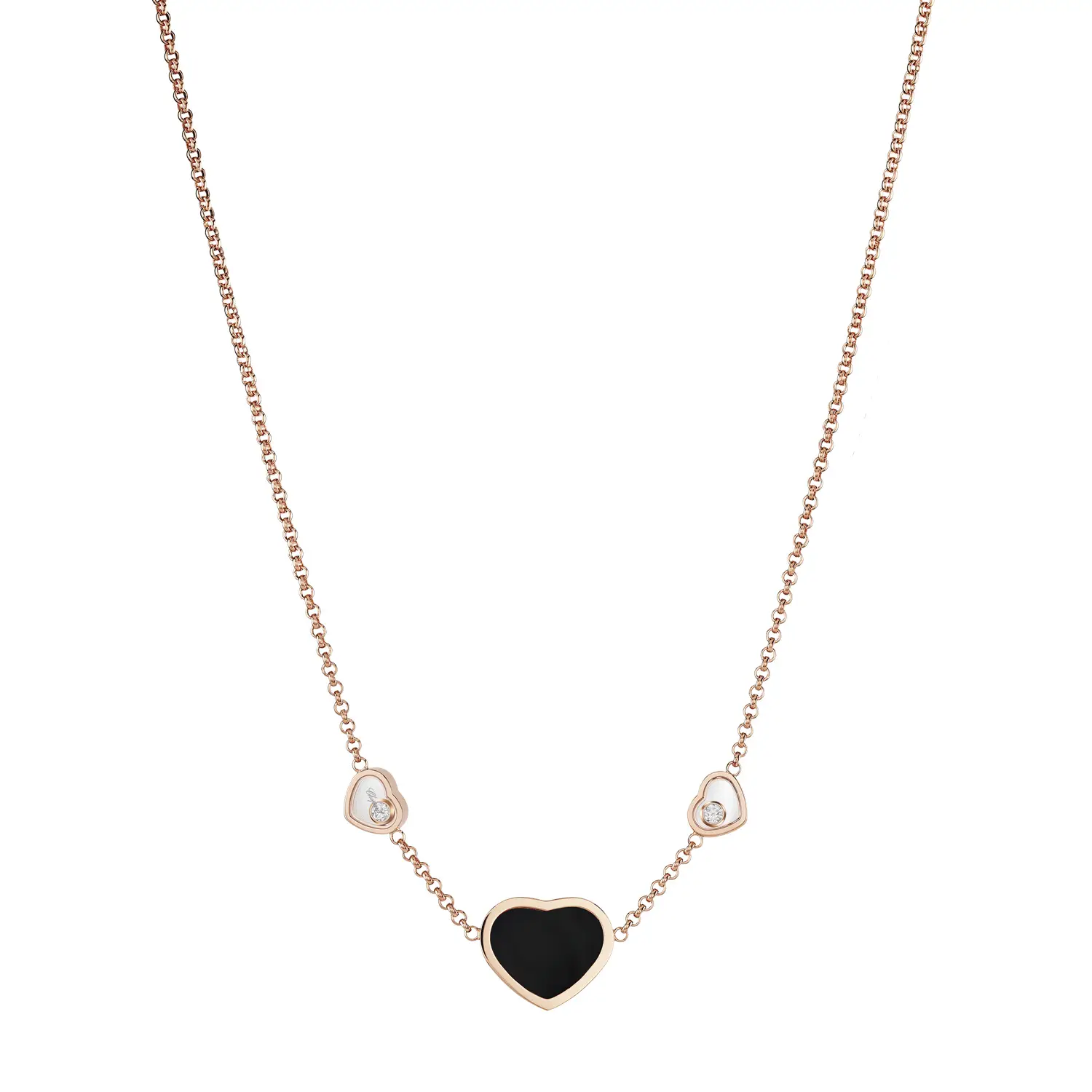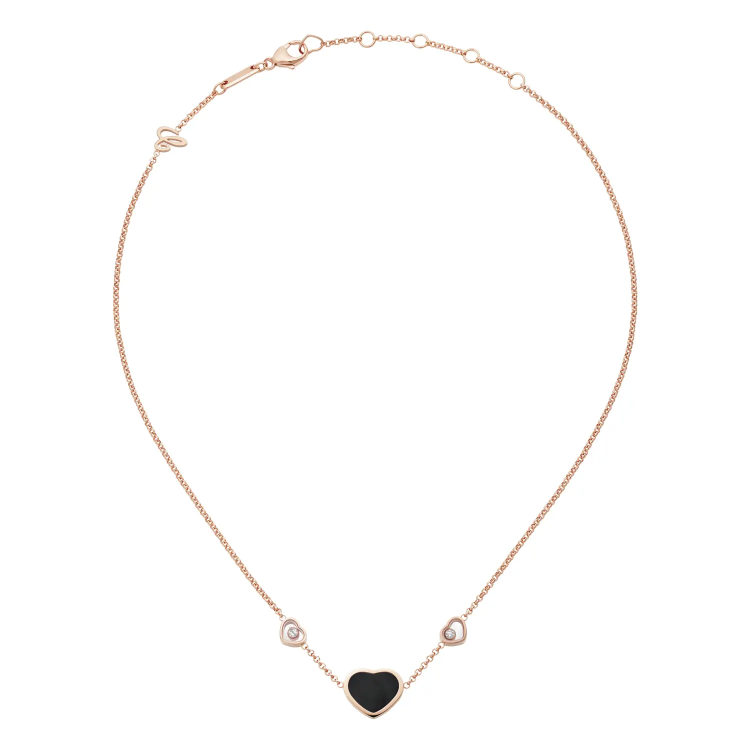 Diese elegante Halskette aus der Happy Hearts-Kollektion vereint das Symbol der Liebe mit modernem Luxus. Gefertigt aus 18 kt Roségold und verziert mit einem Herz aus schwarzem Onyx sowie zwei funkelnden Diamanten mit einem Gesamtgewicht von ca. 0,11 ct, verkörpert sie die perfekte Balance zwischen Stärke und Zartheit. Der Kontrast zwischen tiefem Schwarz und warmem Goldton sorgt für einen zeitlos eleganten Look.