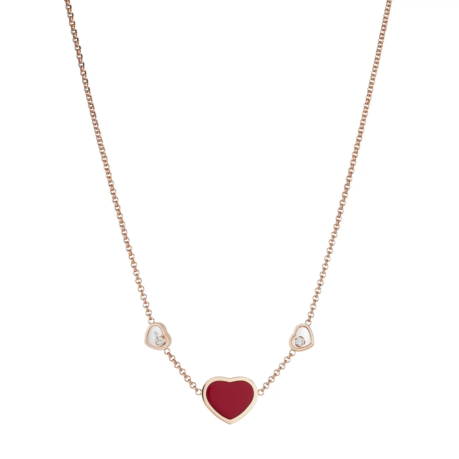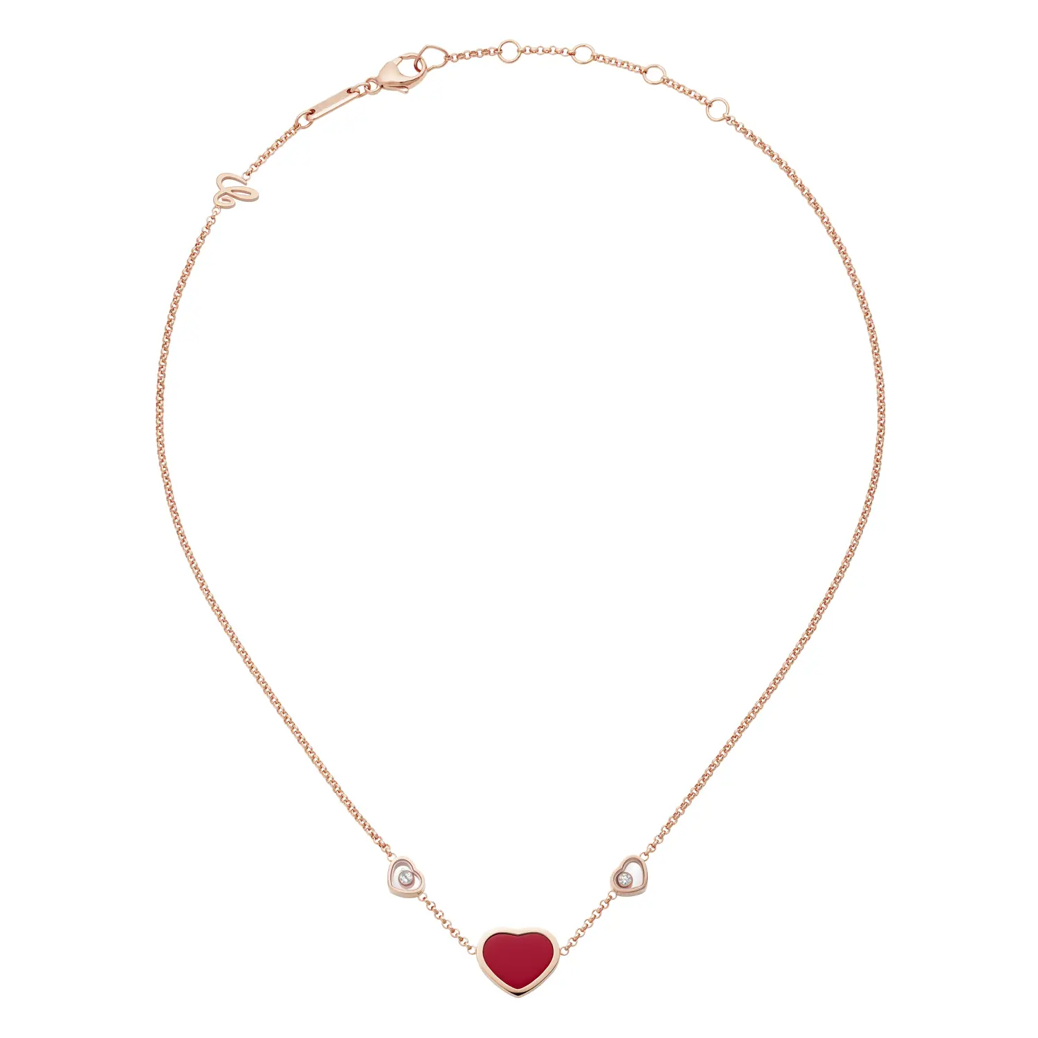 Diese bezaubernde Halskette aus der Happy Hearts-Kollektion ist eine Hommage an weibliche Freude, Liebe und Eleganz. Gefertigt aus 18 kt Roségold und verziert mit dem ikonischen roten Herzmotiv sowie einem funkelnden Diamanten, vereint sie Raffinesse und Lebendigkeit. Der Kontrast zwischen warmem Gold und kräftigem Rot verleiht dem Schmuckstück seinen einzigartigen Charakter und strahlt positive Energie aus.