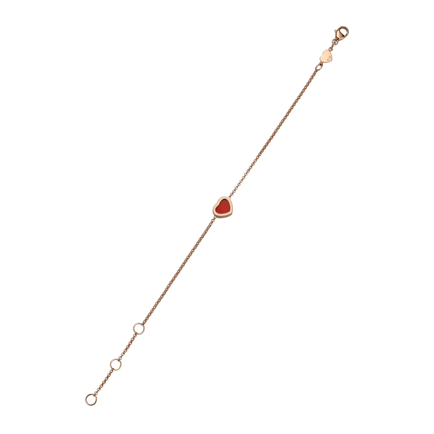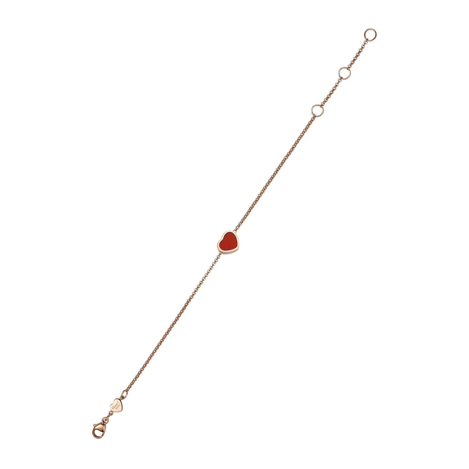 Dieser zarte Armreif aus der My Happy Hearts-Kollektion steht für feminine Eleganz und moderne Leichtigkeit. Gefertigt aus 18 kt Roségold und geschmückt mit einem Herz aus Karneol, begeistert er durch sein minimalistisches Design und den warmen Farbton, der positive Energie ausstrahlt. Jedes Detail verkörpert Chopards Philosophie, Schmuck mit Emotion, Schönheit und Ausdruckskraft zu schaffen.