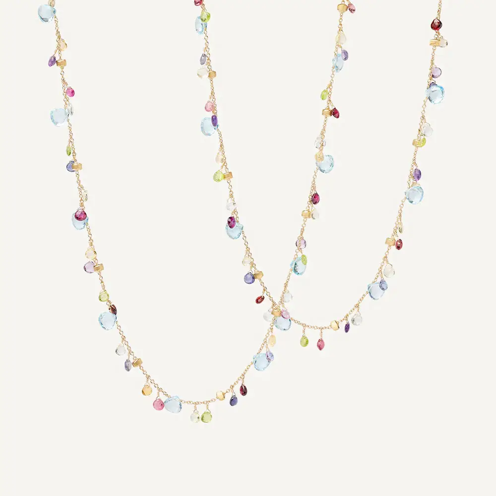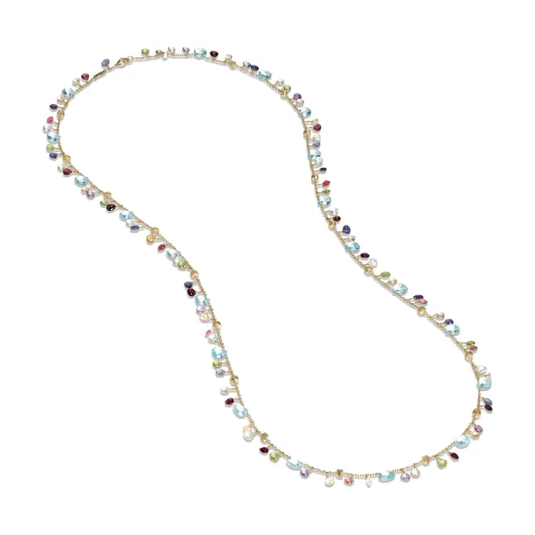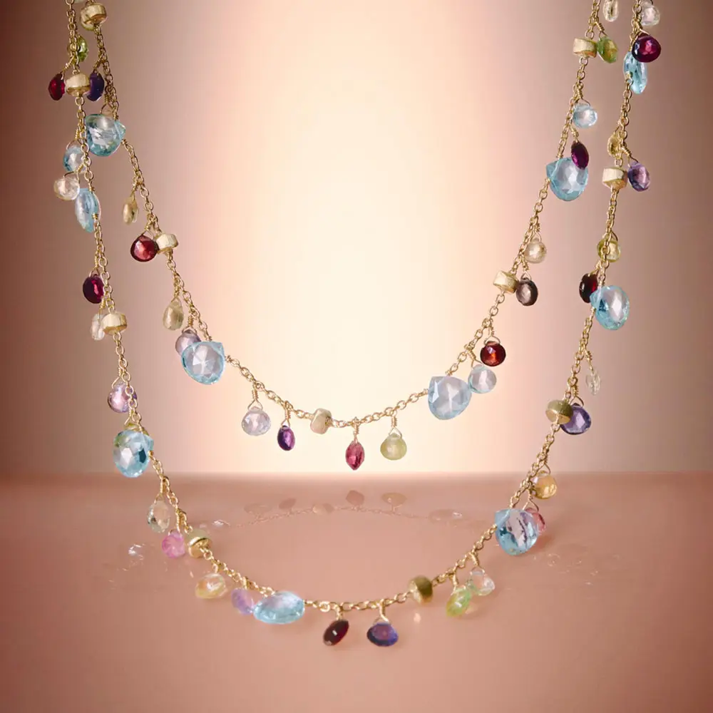 Die Paradise-Kollektion ist eine Hommage an Farben, Licht und Lebensfreude. Marco Bicego kombiniert zarte Ketten aus 18kt Gold mit einer bunten Palette von Edelsteinen – von Turmalinen und Aquamarinen bis hin zu Quarzen und Topasen. Das Ergebnis sind Schmuckstücke voller spielerischer Energie, die an sonnenbeschienene Küsten und die unbeschwerte Atmosphäre des Sommers erinnern.