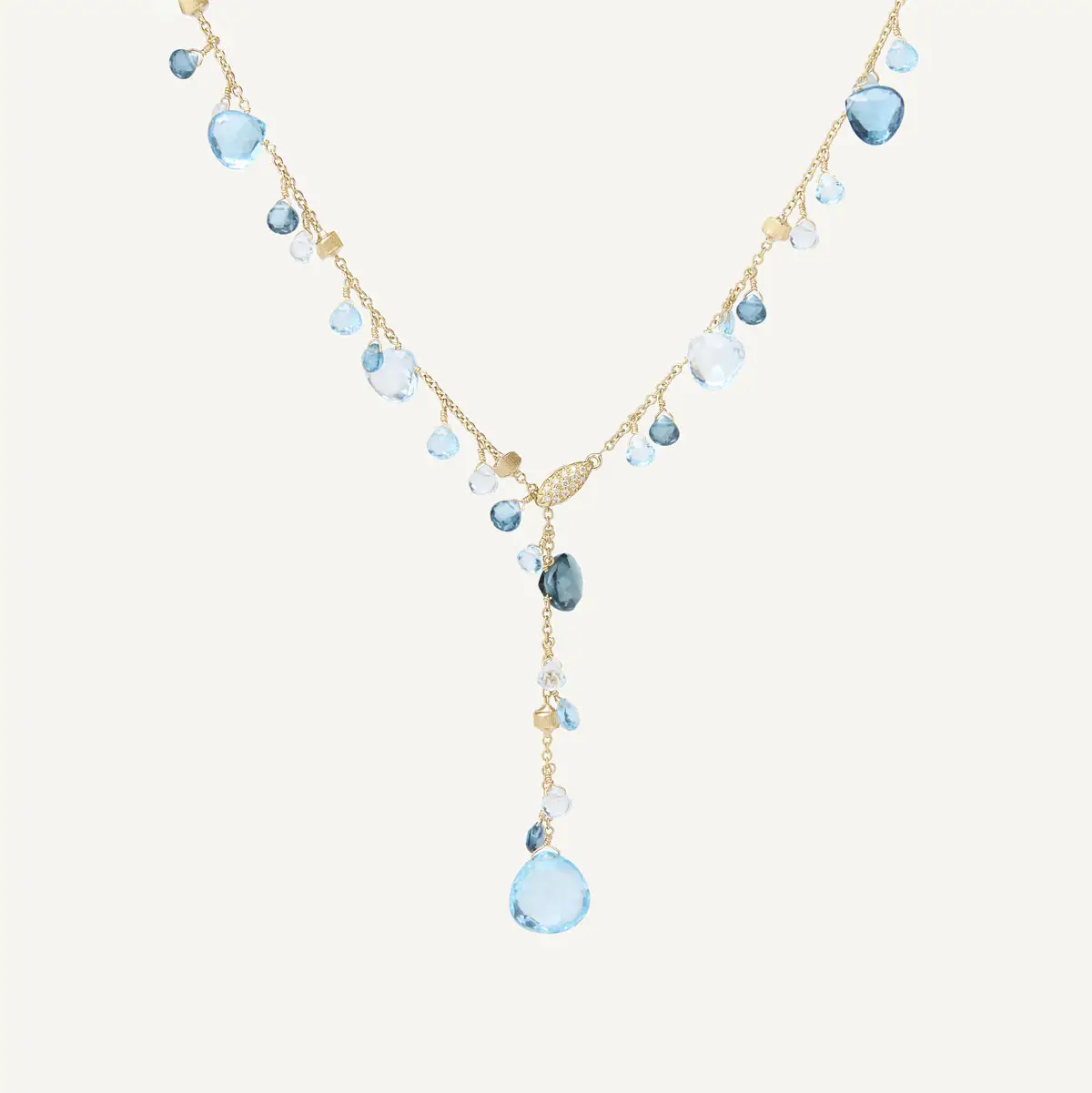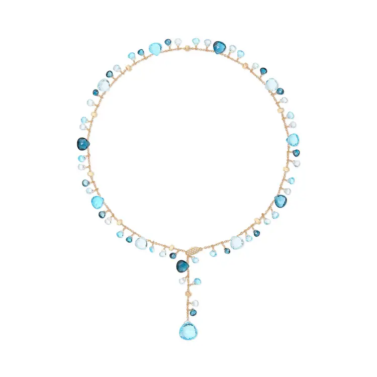 Die Paradise-Kollektion ist eine Hommage an Farben, Licht und Lebensfreude. Marco Bicego kombiniert zarte Ketten aus 18kt Gold mit einer bunten Palette von Edelsteinen – von Turmalinen und Aquamarinen bis hin zu Quarzen und Topasen. Das Ergebnis sind Schmuckstücke voller spielerischer Energie, die an sonnenbeschienene Küsten und die unbeschwerte Atmosphäre des Sommers erinnern.