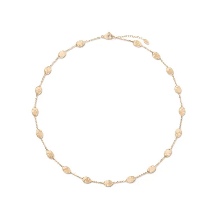 Die Kollektion Siviglia ist von der andalusischen Stadt Sevilla inspiriert – ein Ort voller Licht, Musik und Lebensfreude. Handgravierte ovale Goldelemente erzeugen ein sanftes Wechselspiel von Licht und Schatten, das der Kette eine einzigartige Struktur und subtile Dynamik verleiht.
