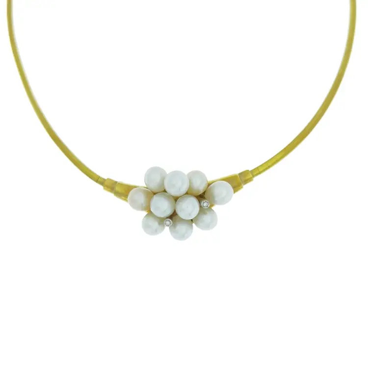 Gold Halskette mit natürlichen Perlen und Diamanten