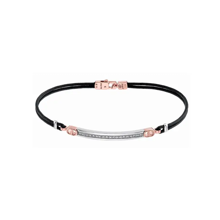 Das Zancan Herrenarmband mit Diamanten vereint moderne Bicolor-Ästhetik mit präziser italienischer Verarbeitung. Es besticht durch 18 K Gold (750/1000) in Bicolor Weiß- & Roségold mit polierter Oberfläche und verleiht dem Schmuckstück eine anspruchsvolle, maskuline Ausstrahlung. Die flexible Kordel-Konstruktion passt sich bequem dem Handgelenk an und wirkt zu lässigen wie auch formellen Outfits elegant.
