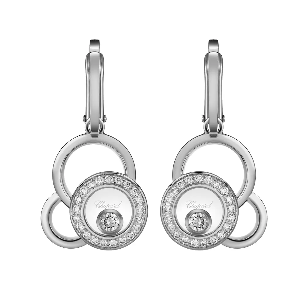 Die Chopard Happy Diamonds 839769-1002 sind ausdrucksstarke Ohrhänger, die die Verspieltheit der ikonischen Kollektion mit zeitloser Eleganz verbinden. Gefertigt aus 18 K Weißgold (750/1000) mit polierter Oberfläche, bleiben die Linien feminin und glatt. Für sicheren, bequemen Sitz sorgt eine Brisur (französischer Verschluss), die das elegante Design unterstreicht und den luxuriösen Charakter hervorhebt.