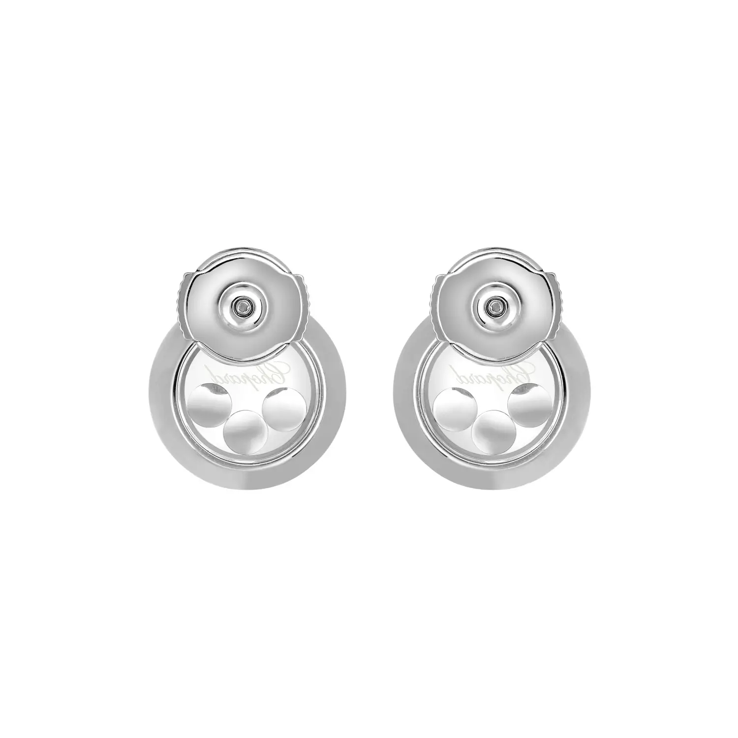 Die Chopard Happy Diamonds Icons 83A018-1001 Ohrringe vereinen verspielte Eleganz und Leichtigkeit – charakteristisch für diese ikonische Kollektion. Gefertigt aus 18 Karat ethischem Weißgold, sind sie mit frei beweglichen Brillanten (insgesamt ca. 0,30 ct) geschmückt, die anmutig zwischen zwei Saphirgläsern tanzen – Symbol für Freude und Freiheit.