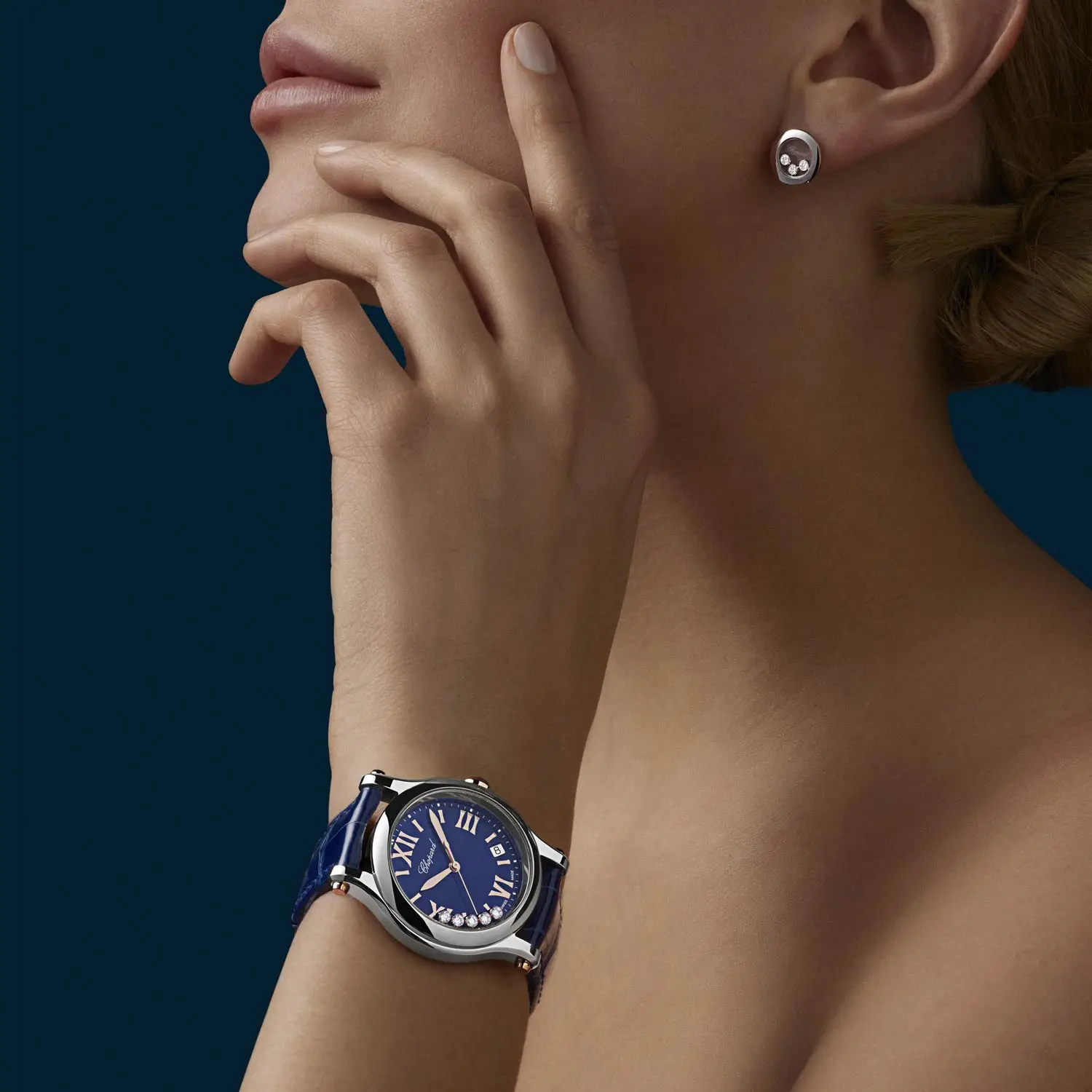 Die Kollektion Happy Diamonds zählt zu den berühmtesten und originellsten Kreationen von Chopard. Seit ihrer Einführung im Jahr 1976 begeistert sie mit frei beweglichen Diamanten, die zwischen zwei Saphirgläsern schweben und bei jeder Bewegung tanzen. Dieses revolutionäre Design wurde zum Symbol für Freiheit, Freude und grenzenlose Kreativität.