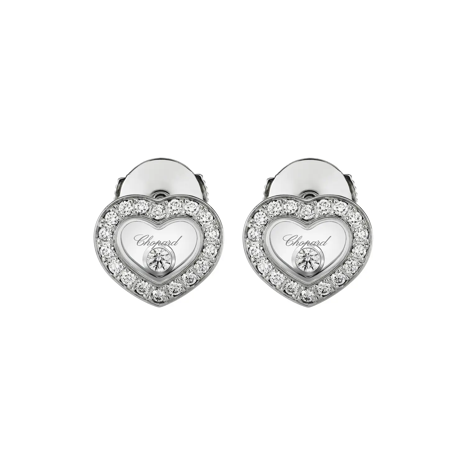 Die Chopard Happy Diamonds Icons 83A054-1201 Ohrringe verkörpern die perfekte Harmonie aus Eleganz, Licht und Bewegung. Gefertigt aus 18 Karat ethischem Weißgold, sind sie mit frei beweglichen Brillanten (insgesamt ca. 0,38 ct) versehen, die anmutig zwischen zwei Saphirgläsern tanzen – ein ikonisches Merkmal der Happy Diamonds Kollektion, Symbol für Freude, Freiheit und Weiblichkeit.