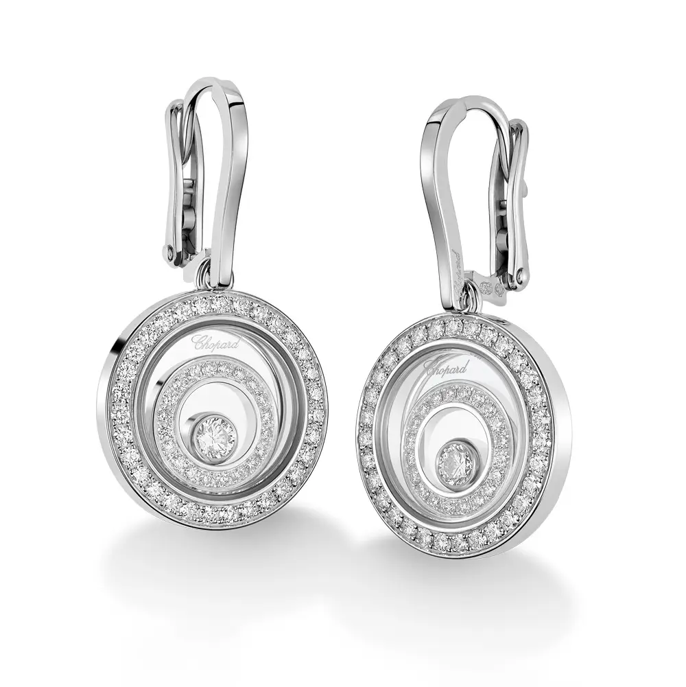 Die Chopard Happy Spirit 838230-1001 sind Ohrhänger, die die Raffinesse der ikonischen Kollektion mit zeitloser Eleganz verbinden. Gefertigt aus 18 K Weißgold (750/1000) mit polierter Oberfläche, wirkt ihr prägnantes Design nobel und zugleich modern – ideal für festliche Momente wie auch als strahlender Akzent zu Alltags-Looks.
