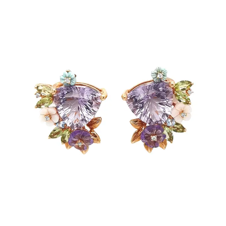 Gold-Ohrringe Halbedelsteine und Diamanten