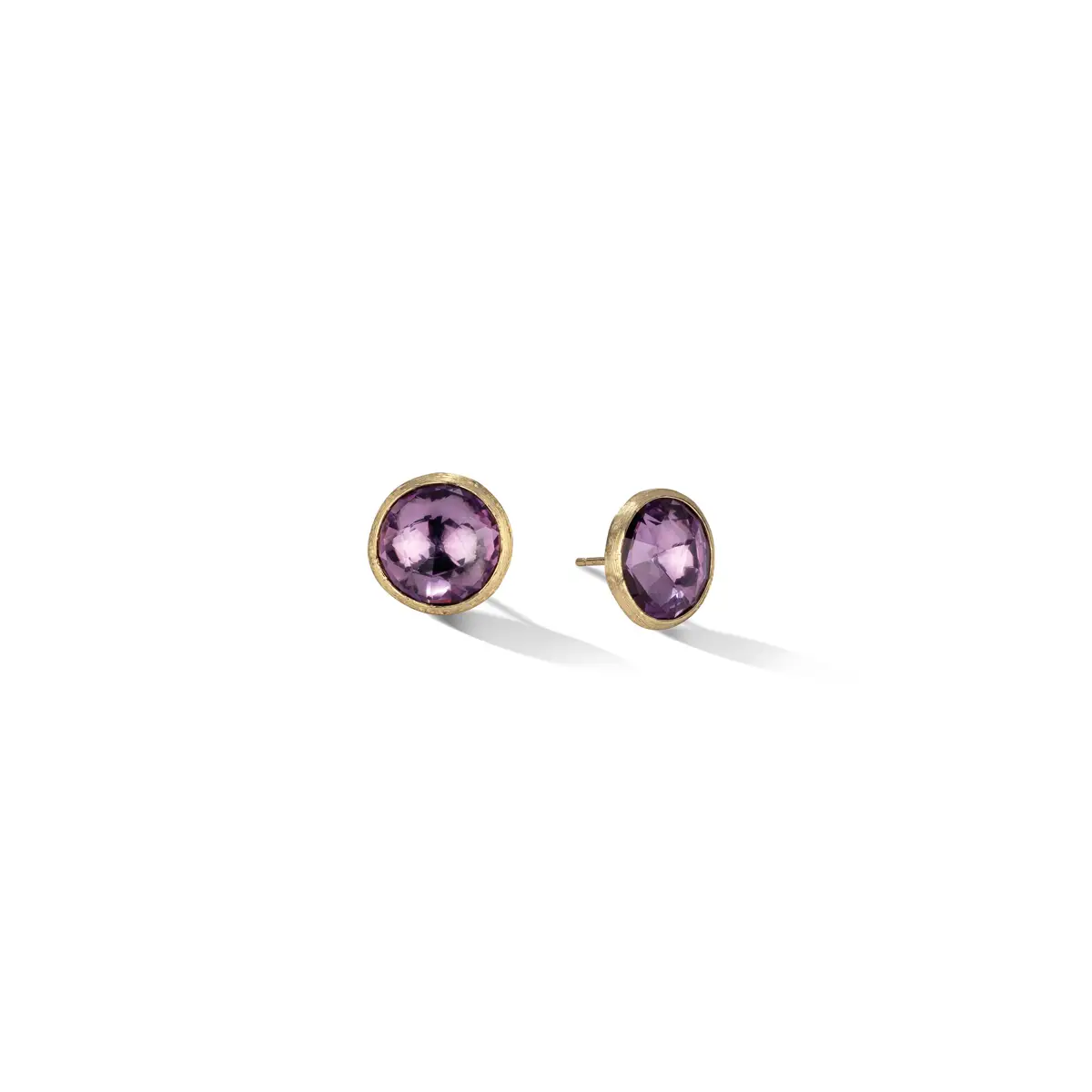 Das dekorative Element misst 13,00 mm im Durchmesser und verleiht den Ohrringen eine kompakte, dennoch ausdrucksstarke Wirkung. Jede Ohrfassung enthält einen natürlichen Amethyst, in Rundschliff (Round), mit Größen zwischen 11,00 und 12,50 mm. Sein zartes Violett entsteht in feinem Kontrast zum Gold und strahlt elegante Zurückhaltung.
