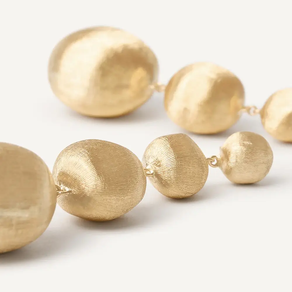 Diese Ohrringe aus der Marco Bicego Africa Kollektion vereinen traditionelle Handwerkskunst mit modernem Design — perfekt für eine Frau, die Schmuck mit Seele und eleganter Schlichtheit zu schätzen weiß. Die Form und matte Oberfläche verleihen ihnen subtile Eleganz und eine naturnahe Leichtigkeit — erinnert an exotische Landschaften und organische Materialien.