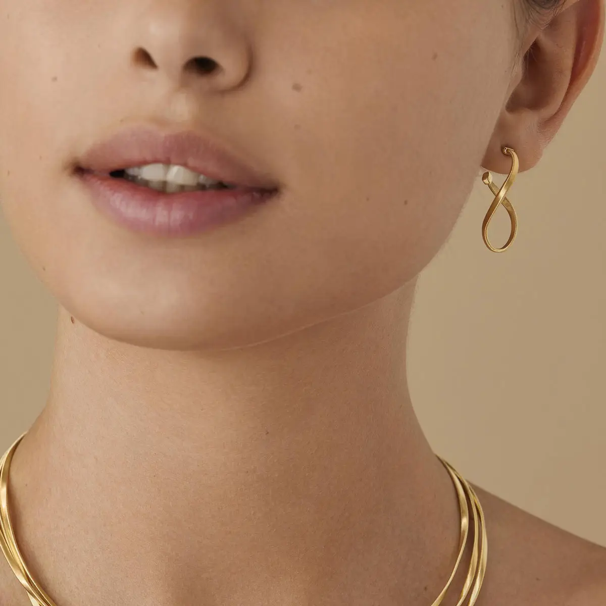 Jedes Stück wird aus 18kt Gold gefertigt und mit der charakteristischen Handdraht-Twist-Technik versehen – ein Markenzeichen von Marco Bicego. Dieses Detail verleiht dem Schmuck Bewegung, Textur und Tiefe, wodurch jedes Stück lebendig und einzigartig wirkt. Marrakech umfasst Halsketten, Armbänder, Ohrringe und Ringe, die häufig mit Diamanten veredelt werden, um noch mehr Brillanz zu erzielen.