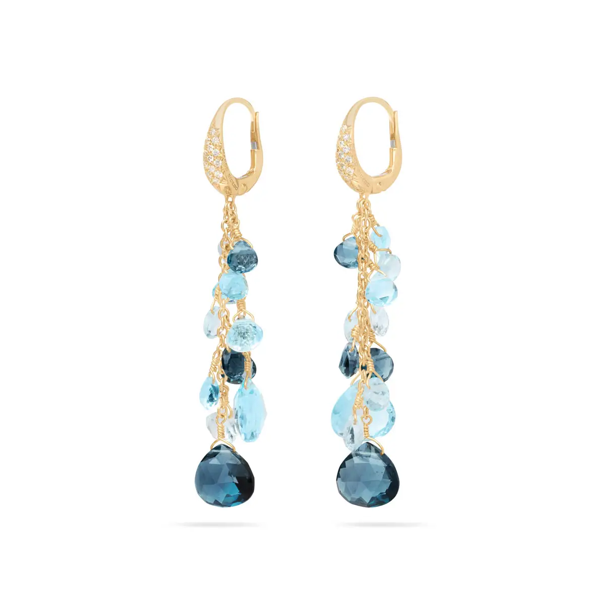 Die Marco Bicego Paradise OB1753 MB TP01 Ohrringe vereinen Eleganz, Farbigkeit und feines Kunsthandwerk. Gefertigt aus Gelbgold 18 kt (750/1000), zeigen sie eine Kombination aus polierten & matten Oberflächen — ein edler Kontrast, der Struktur und Details betont. Die Verschlussart ist ein Klappverschluss, welcher sicheren und komfortablen Halt bietet.