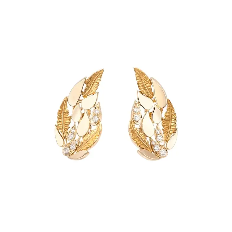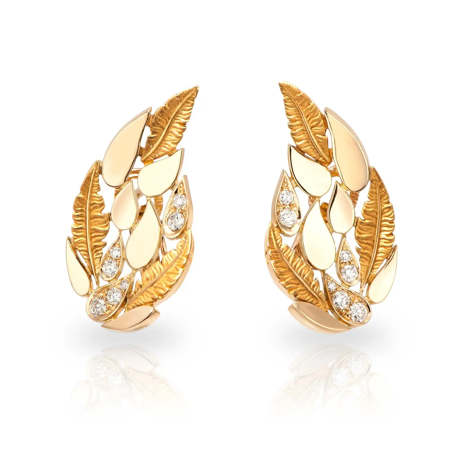 Die Ohrringe Carrera y Carrera M100041 vereinen klassischen Stil mit sorgfältiger Brillantverzierung. Sie bestehen aus 18 kt Gelbgold (750/1000) und weisen eine Kombination aus polierten und matten Oberflächen auf, die feine Kontraste und Struktur erzeugen. Der Dekorelement misst 25,70 × 13,00 mm bei einer Höhe von 2,20 mm, was eine schlanke und elegante Silhouette verleiht. Sie werden mit einem Clip mit Stegverschluss befestigt, der sicheren und bequemen Sitz gewährleistet.
