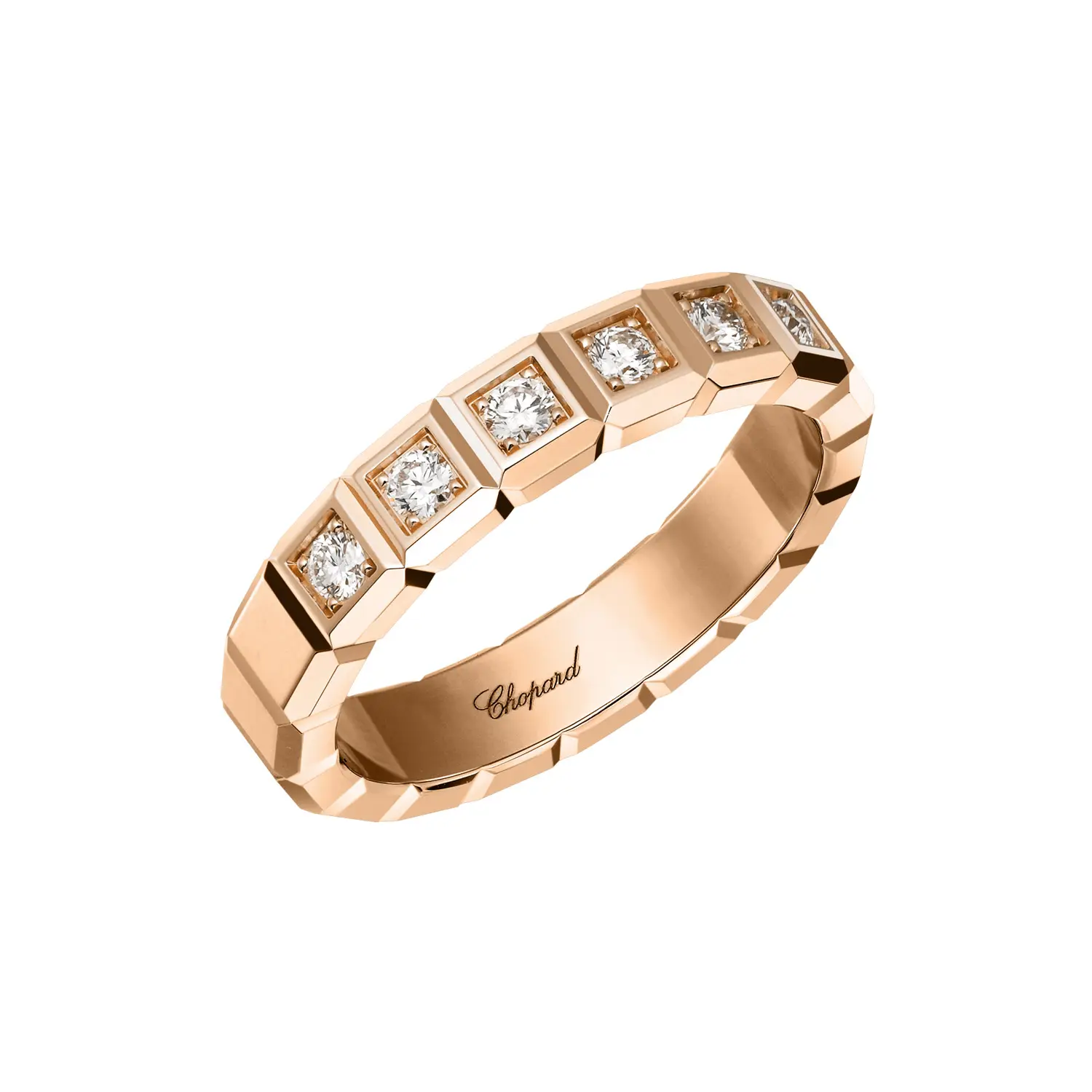 Der Chopard Ice Cube Pure Ring aus 18 K ethischem Roségold ist eine Hommage an moderne Eleganz und meisterhafte Goldschmiedekunst. Sein ikonisches, vom Würfel inspiriertes Design fängt bei jeder Bewegung das Licht ein, während Diamanten mit einem Gesamtgewicht von etwa 0,38 ct dem Schmuckstück ein funkelndes Strahlen verleihen. Die polierten Facetten wirken wie kleine Spiegel und unterstreichen die architektonische Schönheit der Ice Cube Kollektion.