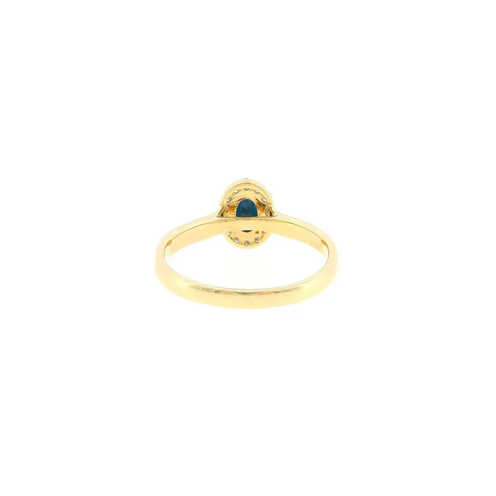 Der Mittelstein wird von einem feinen Halo aus Diamanten umgeben, der dem Ring außergewöhnlichen Glanz verleiht. Der Ring ist mit Diamanten mit einem Gesamtgewicht von 0,15 ct besetzt, in Farbe H und Reinheit SI, was für einen schönen Glanz und ein hervorragendes Preis-Leistungs-Verhältnis sorgt. Das Diamant-Halo hebt außerdem optisch die Größe des Saphirs hervor und verleiht dem Ring ein luxuriöses Aussehen.