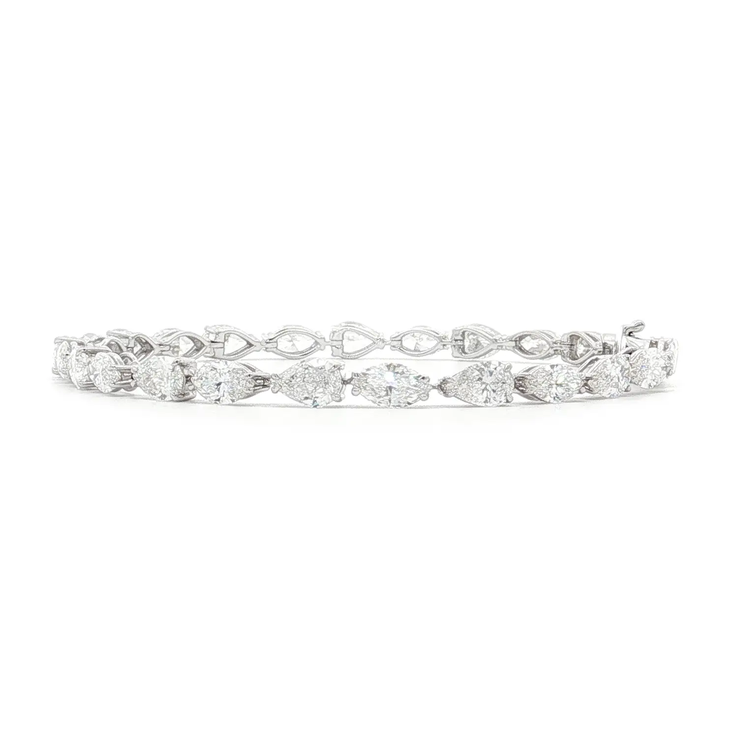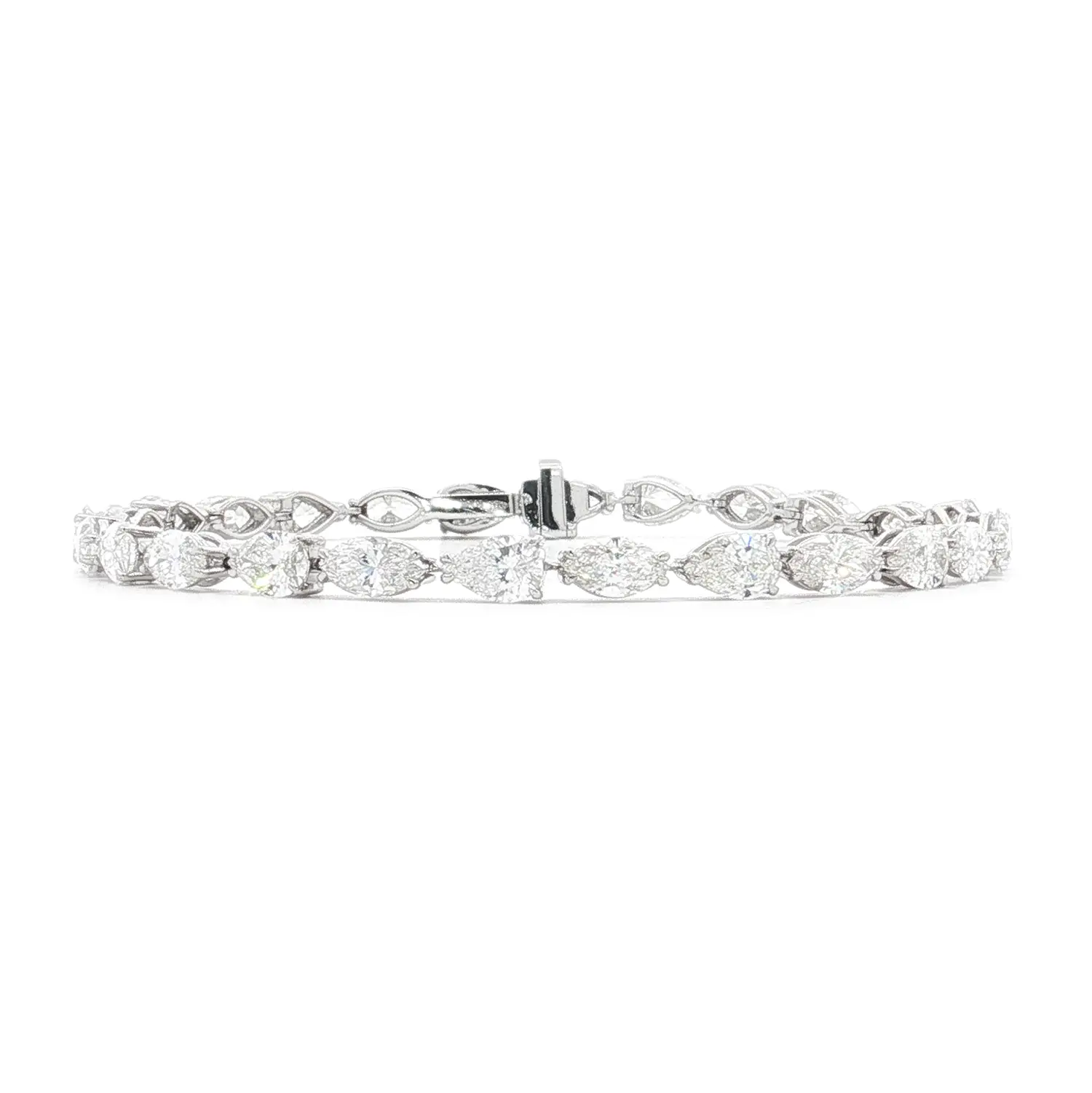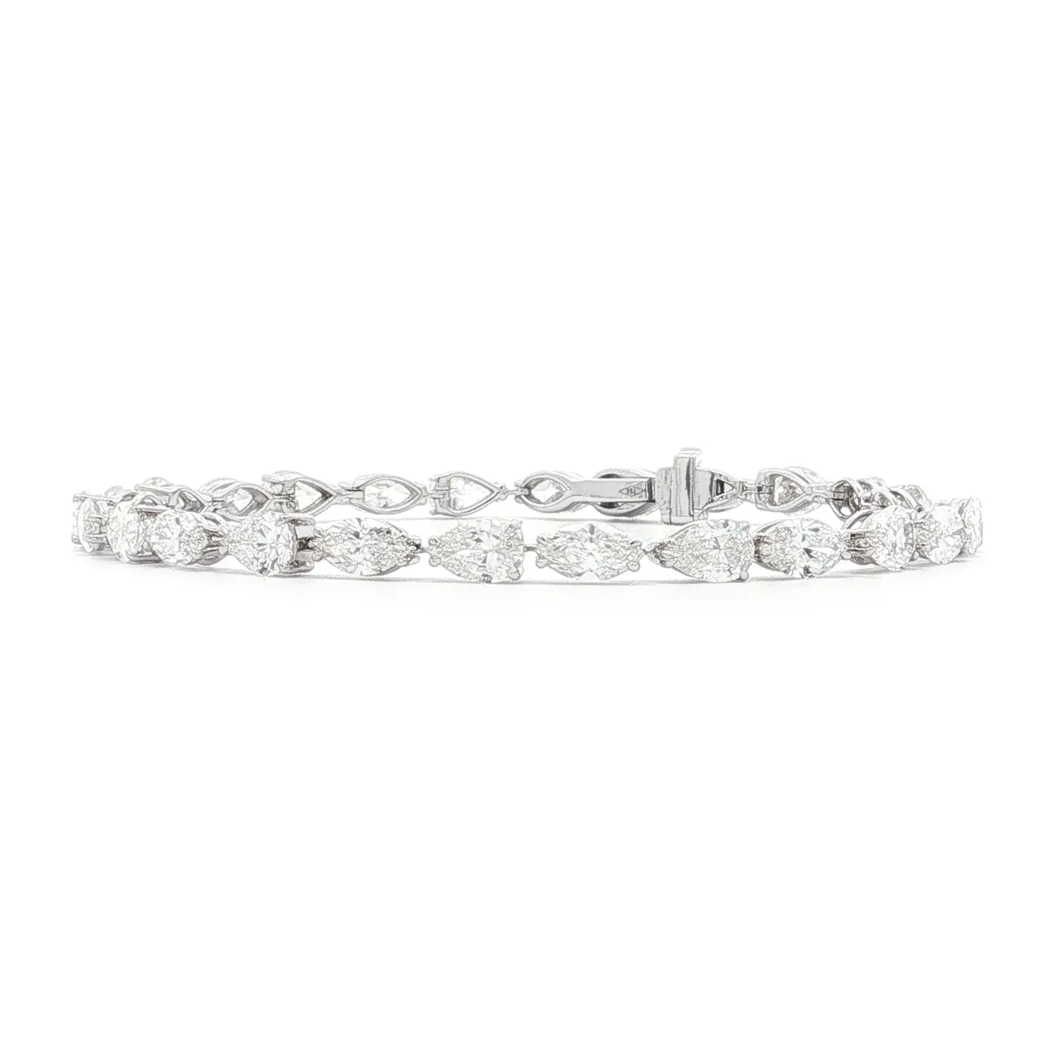 Das Armband ist mit zwei Arten von natürlichen weißen Diamanten besetzt – 13 Tropfen-Diamanten (Pear Cut) mit 4,42 ct und 13 Marquise-Diamanten mit 4,27 ct Gesamtgewicht. Jeder Stein zeichnet sich durch Farbe G und Reinheit VS aus, was außergewöhnliches Funkeln und Klarheit garantiert.