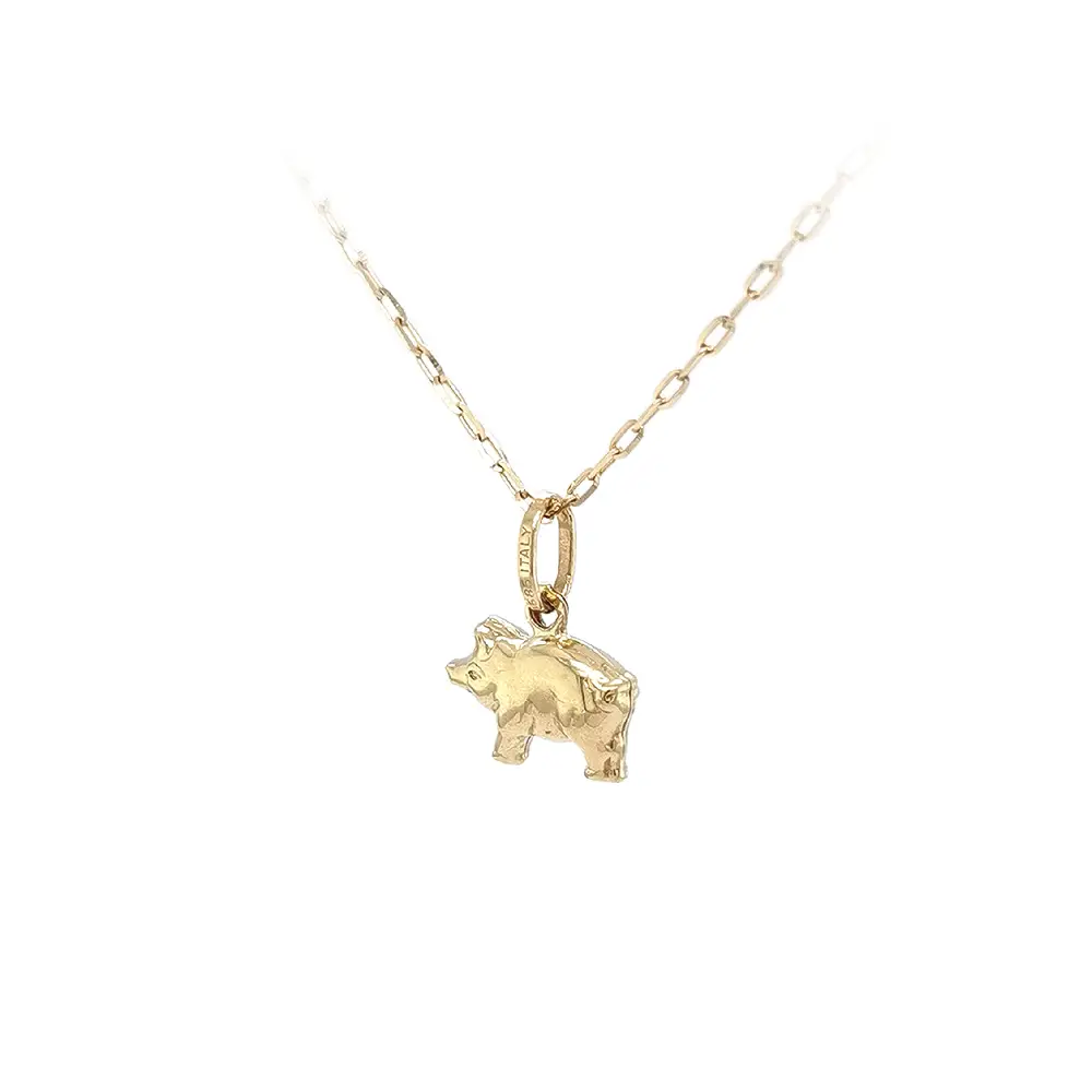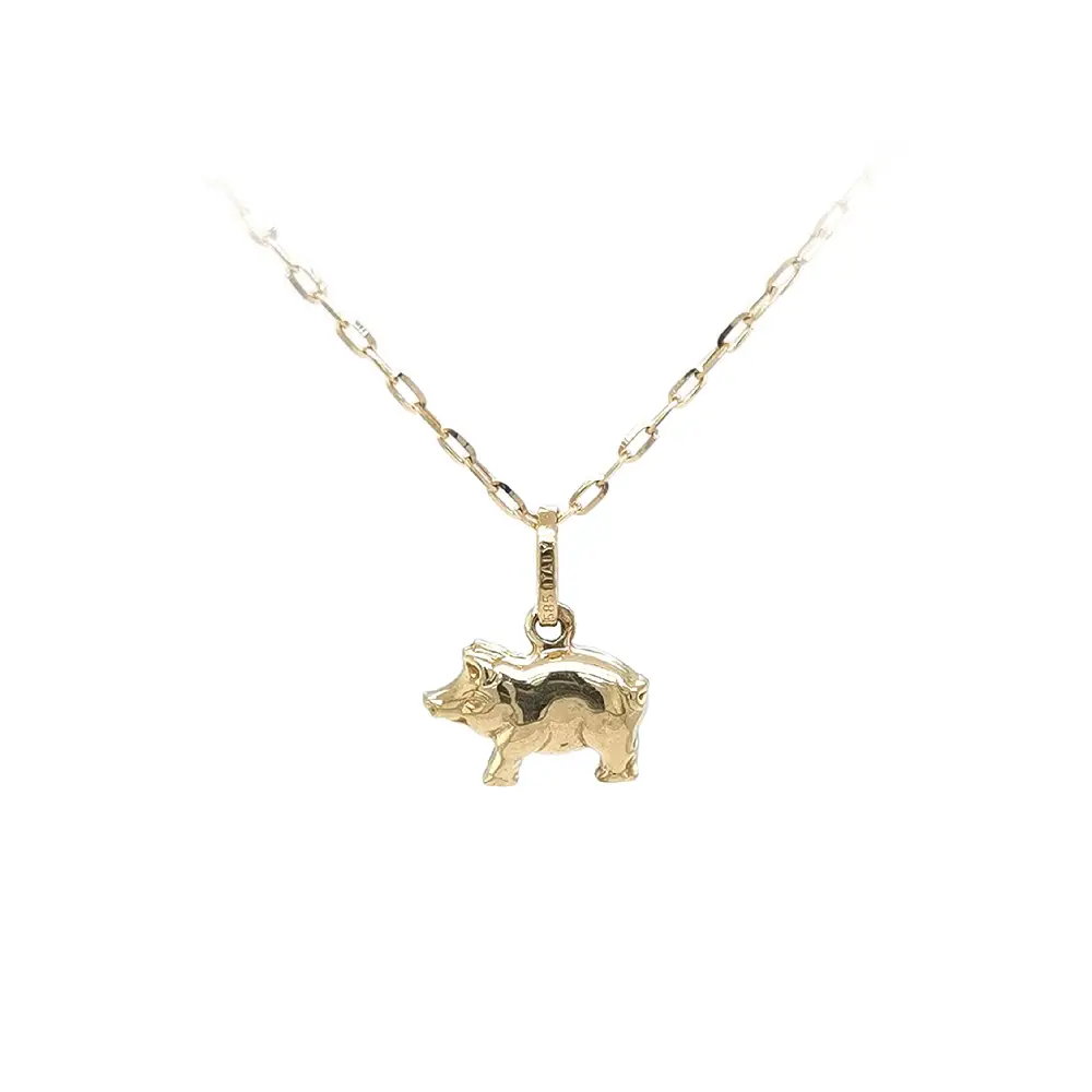 Goldanhänger in Form eines Ferkels als Symbol des Überflusses und des Glücks