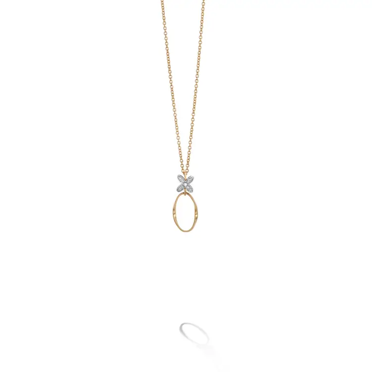Der Anhänger Marco Bicego Marrakech Onde CG830 B3 YW vereint feine italienische Handwerkskunst mit modernem Design. Gefertigt aus 18 kt (750/1000) kombiniertem Gold – einer Mischung aus Gelb- und Weißgold – und versehen mit einer matten Oberfläche, verleiht er jedem Look dezente Eleganz. Mit einer Länge von 42 cm und einer Anhängergröße von 29 × 12 mm schmiegt er sich harmonisch an den Hals.