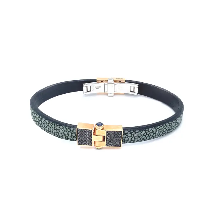 Goldarmband Baraka mit Leder und schwarzen Diamanten BR231081