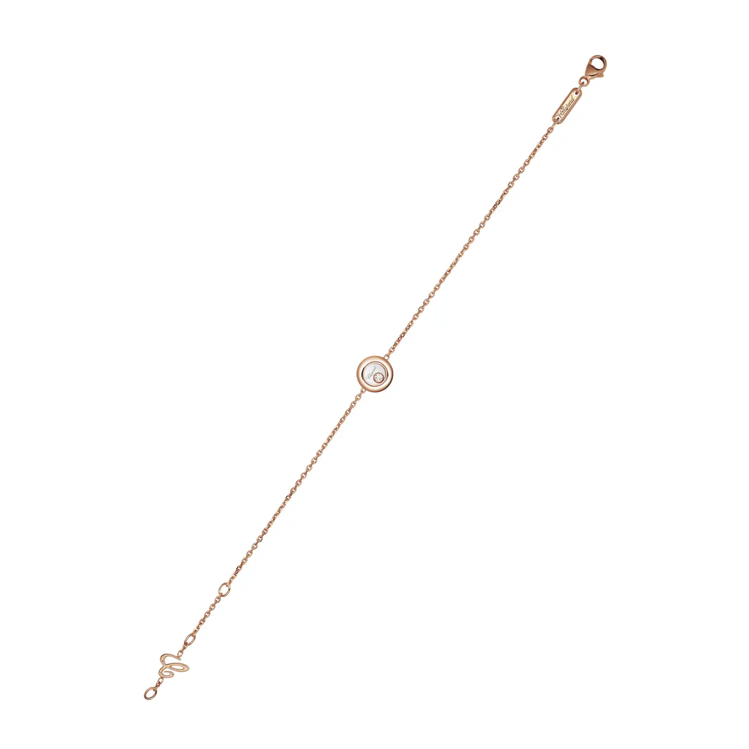 Dieses elegante Armband aus der Happy Diamonds Icons-Kollektion verkörpert spielerische Eleganz und die Freude des Lichts. Gefertigt aus 18 kt Roségold, ist es mit einem frei beweglichen Diamanten von ca. 0,05 ct versehen, der zwischen zwei Saphirgläsern schwebt – ein Symbol für Bewegung, Freiheit und Glück. Jeder Handgriff lässt den Diamanten lebendig aufleuchten.