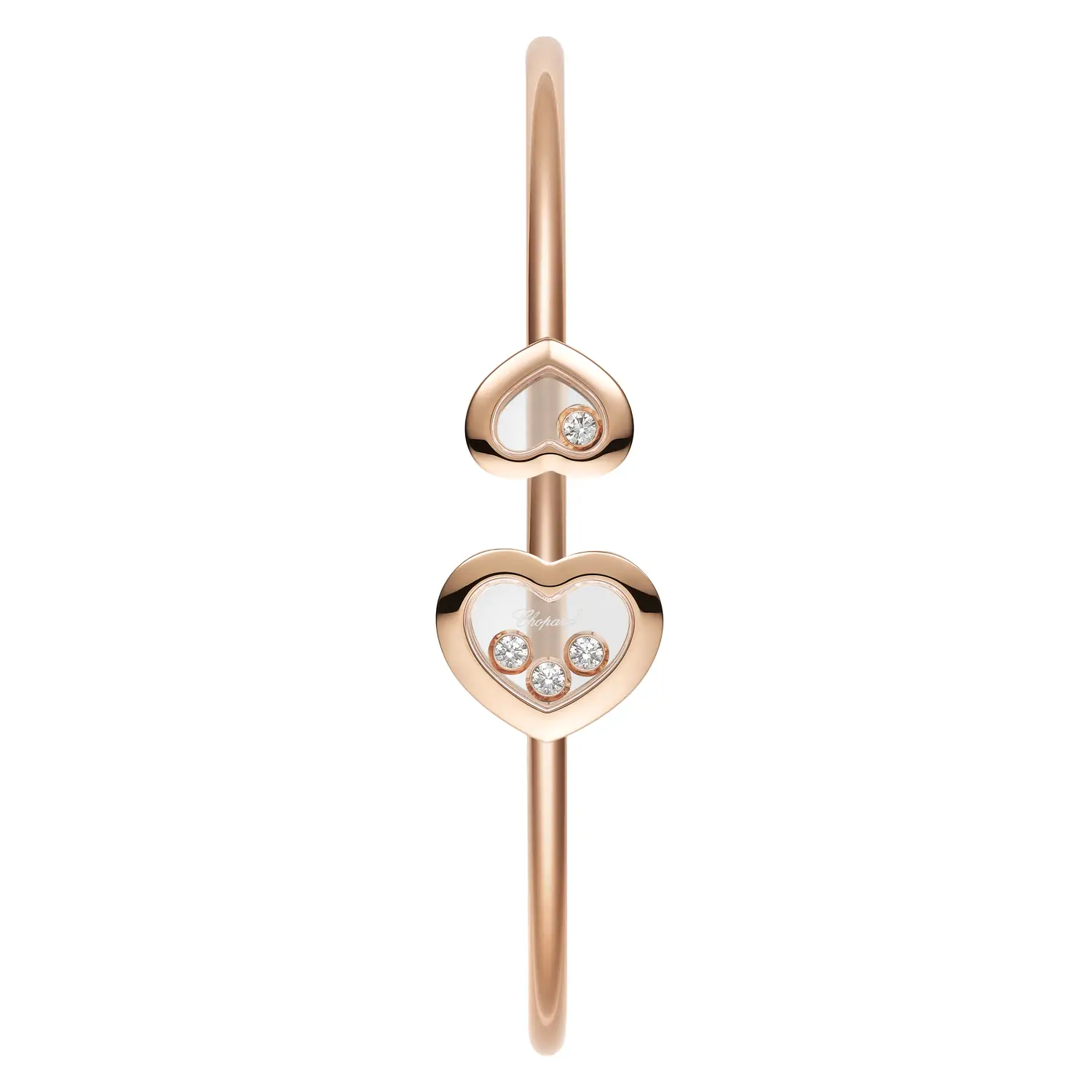 Dieser elegante Armreif aus der Happy Diamonds Icons-Kollektion verkörpert Chopards unverkennbaren Stil – eine harmonische Verbindung aus Leichtigkeit, Bewegung und Eleganz. Gefertigt aus 18 kt Roségold, ist er mit vier frei beweglichen Diamanten von insgesamt ca. 0,20 ct besetzt, die zwischen zwei Saphirgläsern eingefasst sind und bei jeder Bewegung aufleuchten.