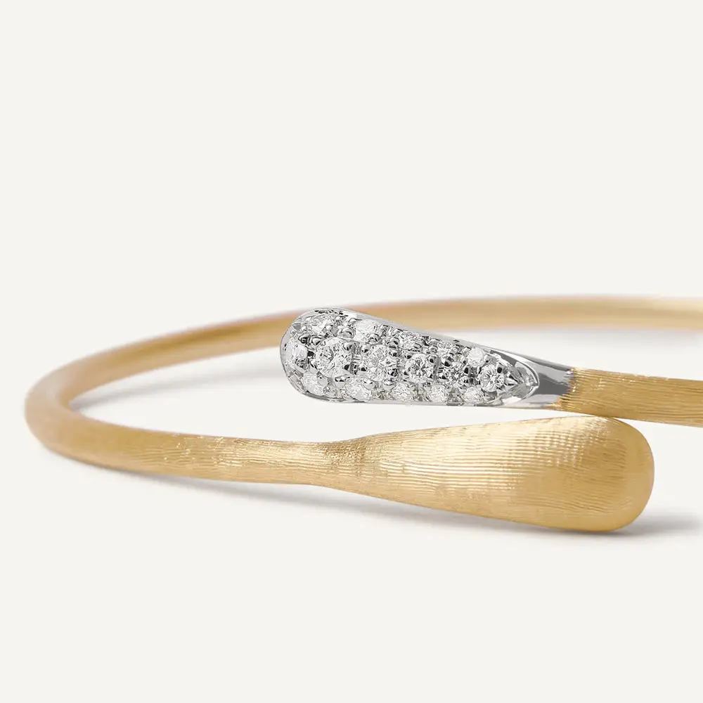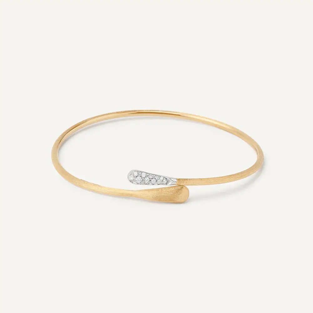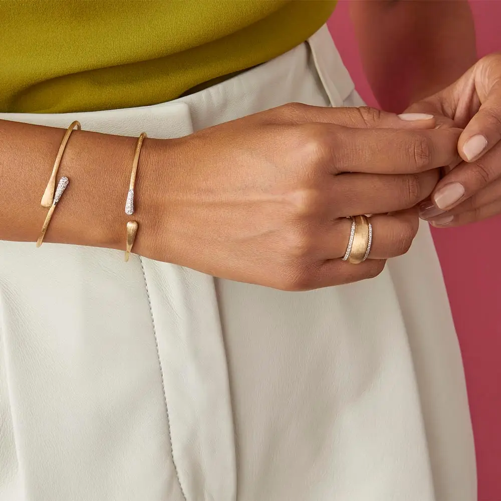 Das Armband Marco Bicego Lucia SB110 B YW Q6 verkörpert Luxus und meisterliches Handwerk in Perfektion. Gefertigt aus 18 kt (750/1000) Gelbgold in einem „Kombiniert-Gold“-Stil mit einer glänzenden und matten Oberfläche, zeigt es eine beeindruckende Verbindung von Politur und Struktur. Zusätzlich ist es mit natürlichen weißen Diamanten (Farbe G, Reinheit VS) mit einer Gesamtkaratgewicht von 0,15 ct im „Round“-Schliff besetzt.