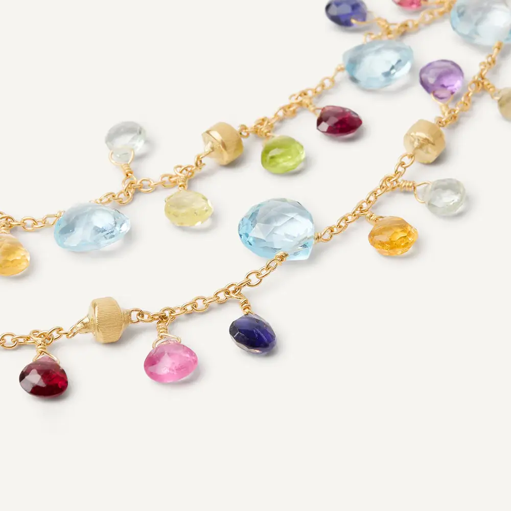 Die Paradise-Kollektion ist eine Hommage an Farben, Licht und Lebensfreude. Marco Bicego kombiniert zarte Ketten aus 18kt Gold mit einer bunten Palette von Edelsteinen – von Turmalinen und Aquamarinen bis hin zu Quarzen und Topasen. Das Ergebnis sind Schmuckstücke voller spielerischer Energie, die an sonnenbeschienene Küsten und die unbeschwerte Atmosphäre des Sommers erinnern.