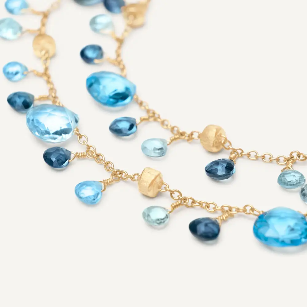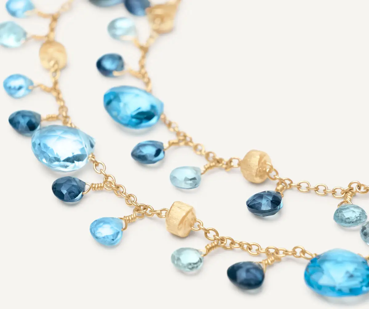 Die Paradise-Kollektion ist eine Hommage an Farben, Licht und Lebensfreude. Marco Bicego kombiniert zarte Ketten aus 18kt Gold mit einer bunten Palette von Edelsteinen – von Turmalinen und Aquamarinen bis hin zu Quarzen und Topasen. Das Ergebnis sind Schmuckstücke voller spielerischer Energie, die an sonnenbeschienene Küsten und die unbeschwerte Atmosphäre des Sommers erinnern.