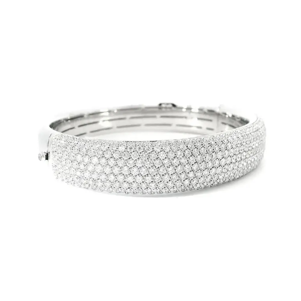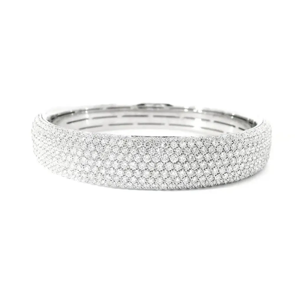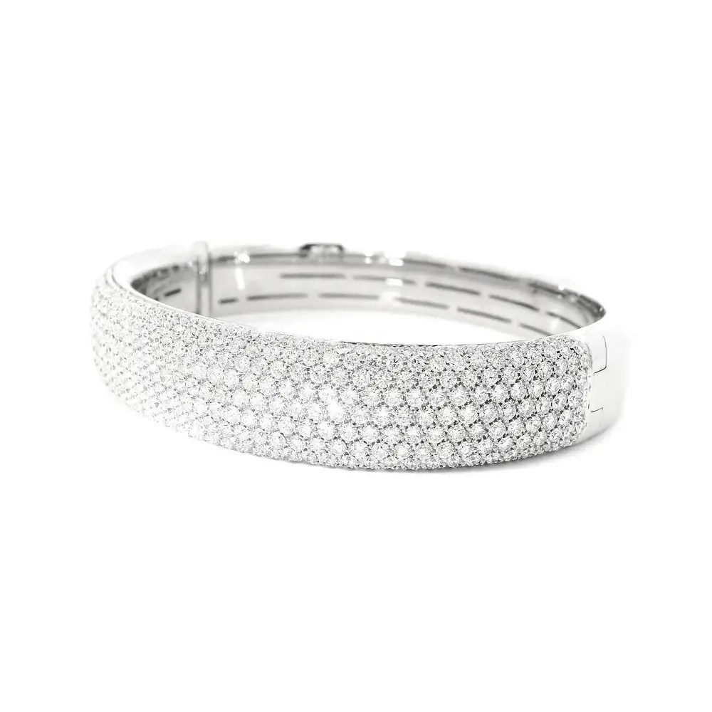 Das Armband ist mit 710 natürlichen weißen Diamanten besetzt, mit einem Gesamtgewicht von 12,90 ct und einem Durchmesser von 1,70 mm je Stein. Der Rundschliff sorgt für maximale Brillanz und perfekte Lichtreflexion. Diamanten in der Farbe G und Reinheit VS verleihen dem Schmuckstück eine gleichmäßige, leuchtende Ausstrahlung – wie ein Band aus purem Licht um das Handgelenk.