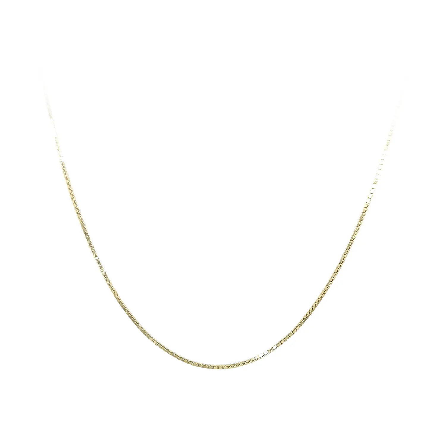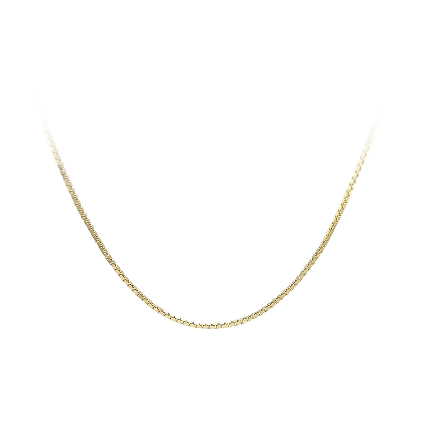 Diese goldene Boxkette zeichnet sich durch regelmäßige quadratische Glieder aus, die einen klaren, modernen und zeitlosen Look schaffen. Durch die feine Ausführung und die Breite von 0,80 mm wirkt sie dezent und elegant – ideal für minimalistischen Stil und den täglichen Gebrauch.
