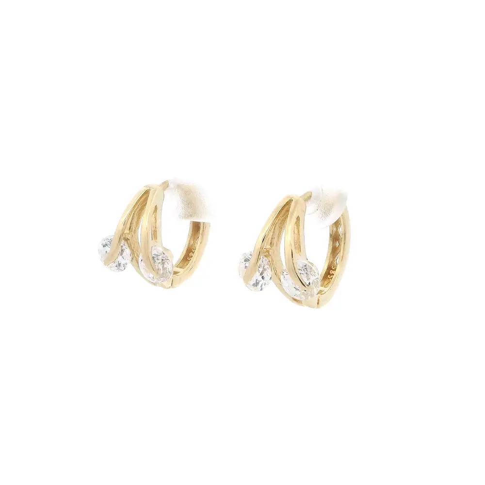 Diese eleganten Ohrringe aus 14 Karat Gelbgold (585/1000) bestechen durch ein raffiniertes Design, das klassische Linien mit modernem Stil verbindet. Vier funkelnde Zirkonia-Steine sind kunstvoll in eine geschwungene Goldform gefasst und verleihen dem Schmuckstück Leichtigkeit und Bewegung. Ihr strahlender Glanz zieht auf natürliche Weise Blicke auf sich und unterstreicht die feminine Ausstrahlung.