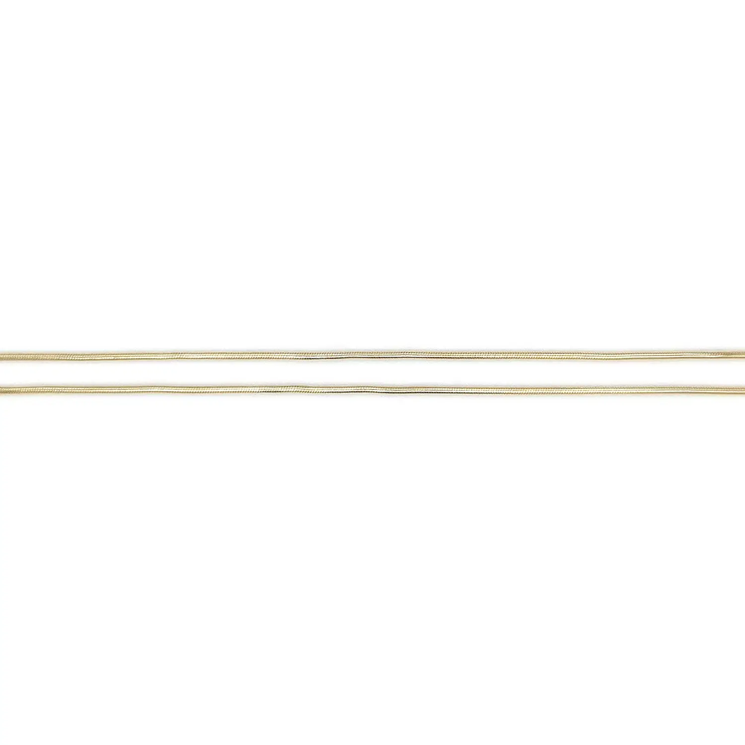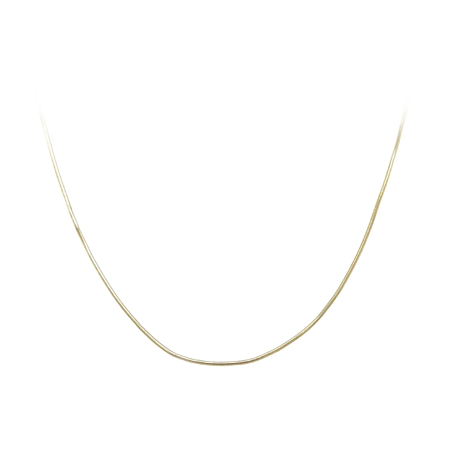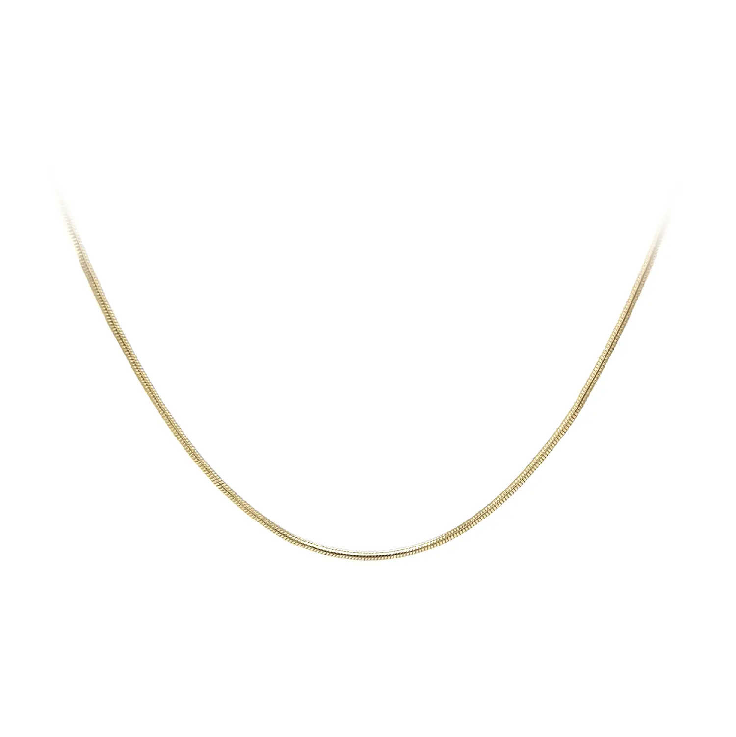 Diese Goldkette im Schlangenmuster besticht durch ihre glatte, kompakte Struktur, die am Hals eine elegante und fließende Wirkung erzeugt. Das minimalistische Design ohne sichtbare Glieder wirkt sehr klar und hochwertig und eignet sich ideal sowohl zum alleinigen Tragen als auch als feine Basis für einen Anhänger. Das Schlangenmuster überzeugt durch seinen dezenten Glanz und zeitlosen Charakter.