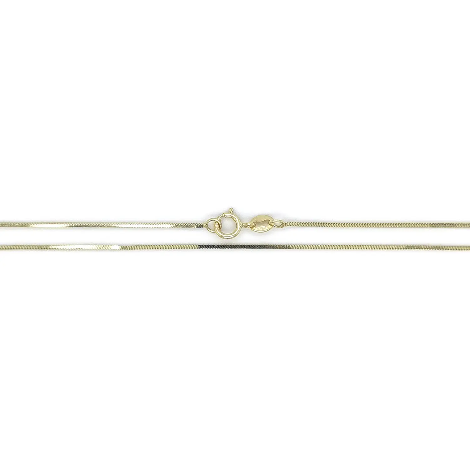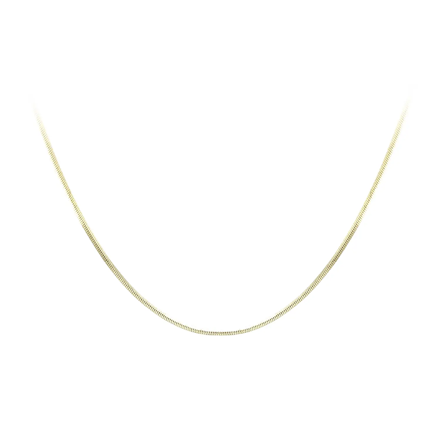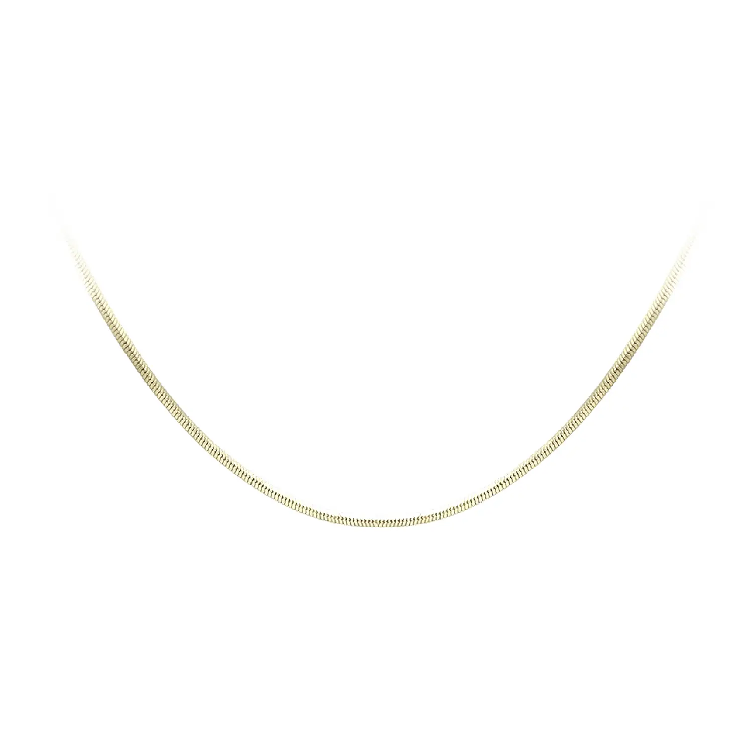 Diese elegante Goldkette im Schlangenmuster besticht durch ihre glatte, kompakte Verarbeitung und einen feinen Glanz, der ihr ein klares und modernes Erscheinungsbild verleiht. Dank ihrer flexiblen Konstruktion passt sie sich natürlich der Halslinie an und bietet hohen Tragekomfort. Die Kette eignet sich ideal zum alleinigen Tragen oder als dezente Basis für einen Anhänger.