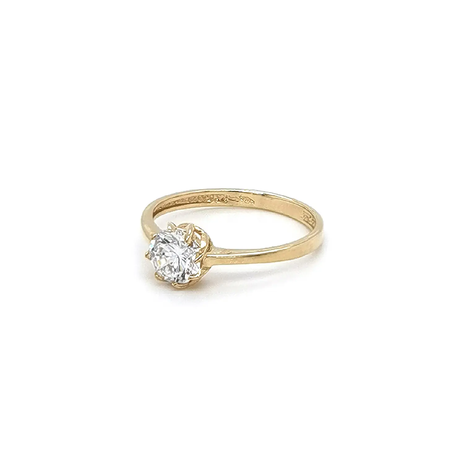 Dieser goldene Solitärring mit Zirkon verkörpert zeitlose Eleganz in ihrer reinsten Form. Der feine Ring aus Gelbgold hält einen präzise geschliffenen, klaren Zirkon in einer klassischen Krappenfassung, der bei jeder Bewegung wunderschön das Licht einfängt. Das minimalistische Design lässt den Stein im Mittelpunkt stehen und verleiht dem Ring eine harmonische Ausstrahlung, die zu jedem Stil passt.