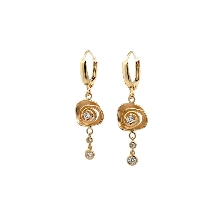 Goldfarbene Ohrringe mit Rosendesign und funkelnden Zirkoniasteinen