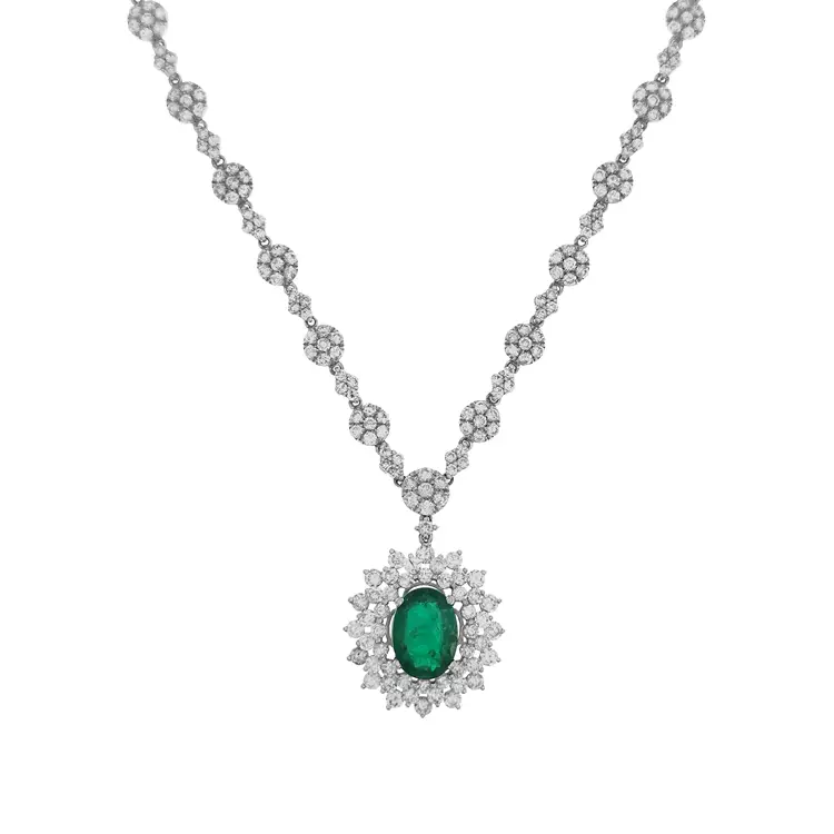 Diese Smaragd- und Diamantkette von Beny Jewellery wurde für Frauen geschaffen, die Luxus, Eleganz und Perfektion lieben. Gefertigt aus 18 kt (750/1000) Weißgold mit polierter Oberfläche, beeindruckt sie durch ihren edlen Glanz und raffiniertes Design. Jedes Detail spiegelt höchste Handwerkskunst und zeitlose Schönheit wider.