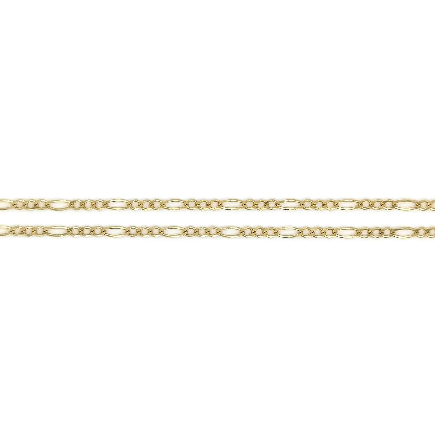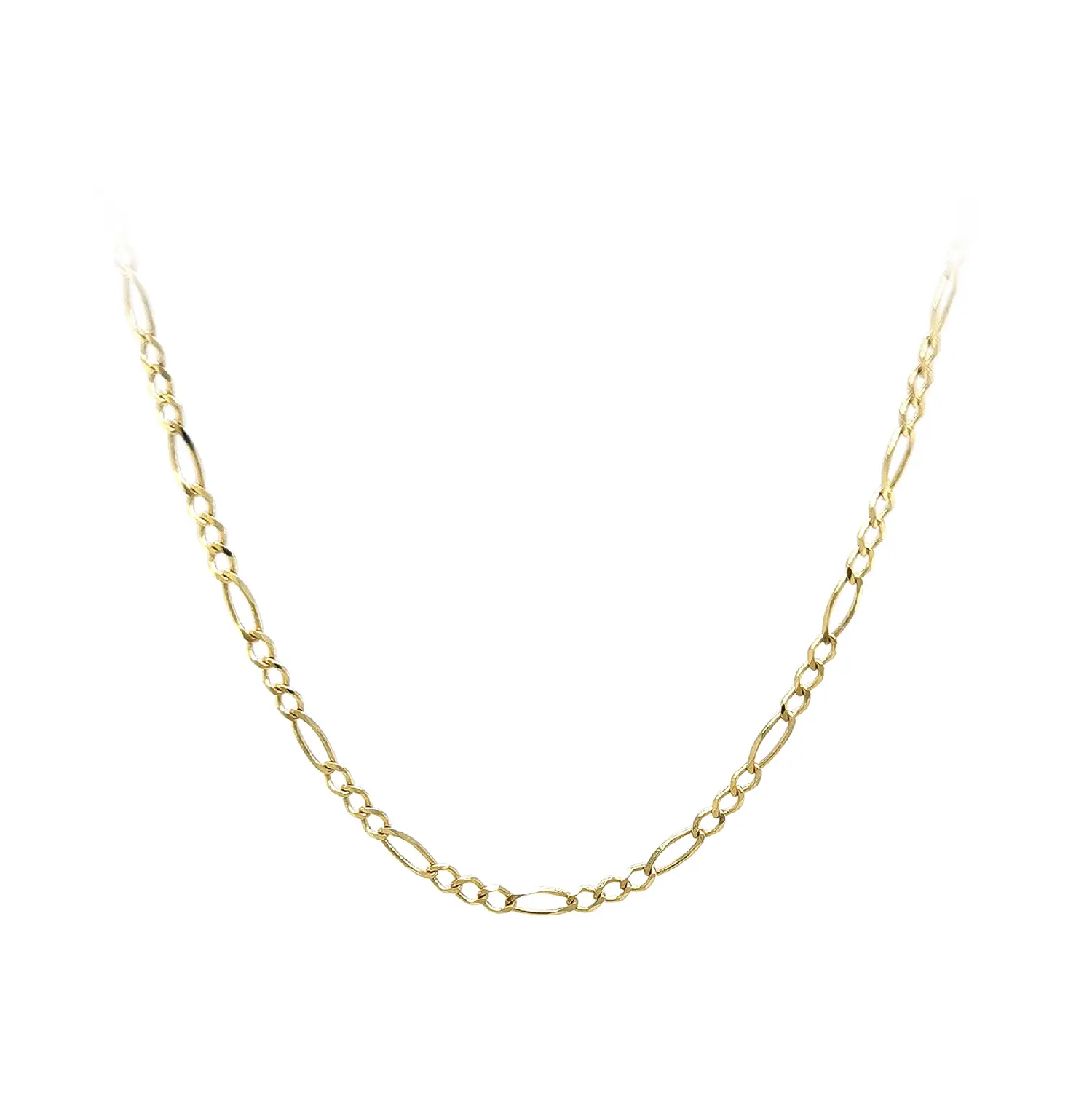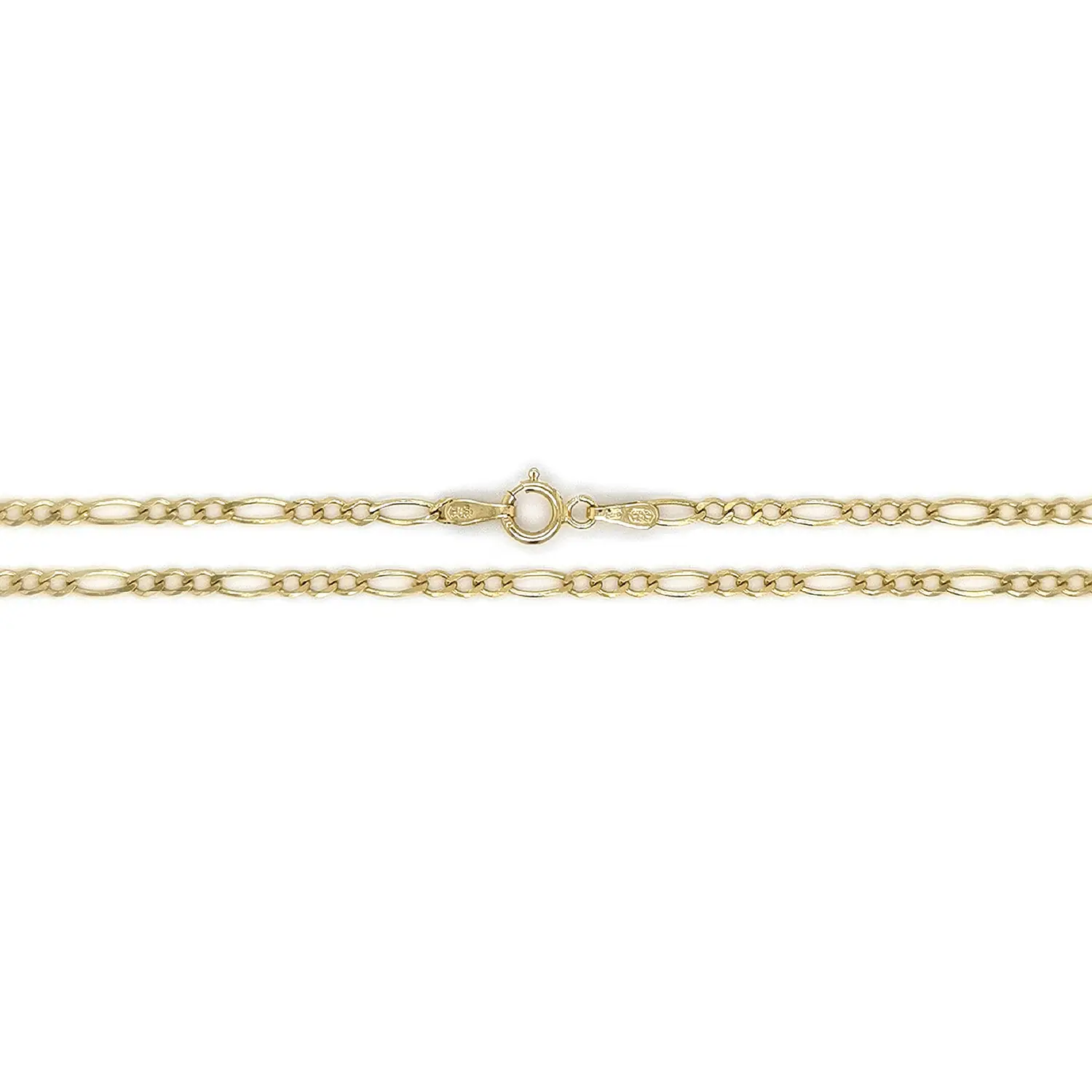 Die Figaro-Goldkette mit einer Länge von 50 cm und einer Breite von 2,20 mm ist ein elegantes und zeitloses Accessoire, das durch das charakteristische Muster aus einem längeren ovalen Glied und drei kürzeren Gliedern besticht. Diese klassische Struktur wirkt leicht, harmonisch und stilvoll und eignet sich perfekt für den Alltag wie auch für besondere Anlässe. Die präzise gearbeiteten Glieder reflektieren das Licht bei jeder Bewegung und verleihen der Kette einen zarten, aber dennoch auffälligen Glanz.