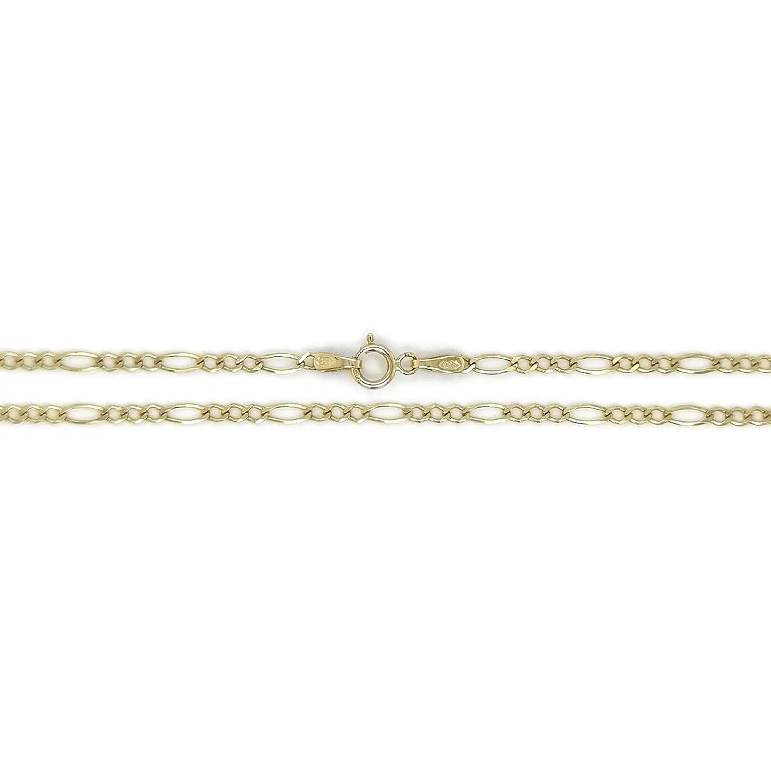 Diese klassische Figaro-Goldkette besticht durch ihren eleganten Rhythmus aus drei kleinen Gliedern im Wechsel mit einem länglichen Glied, was ein ikonisches und harmonisches Design schafft. Mit ihrer Breite von 2,40 mm wirkt die Kette etwas ausdrucksstärker, während die Länge von 42 cm sie besonders für Damen ideal macht – sie legt sich elegant um den Hals und wirkt zugleich fein und luxuriös.