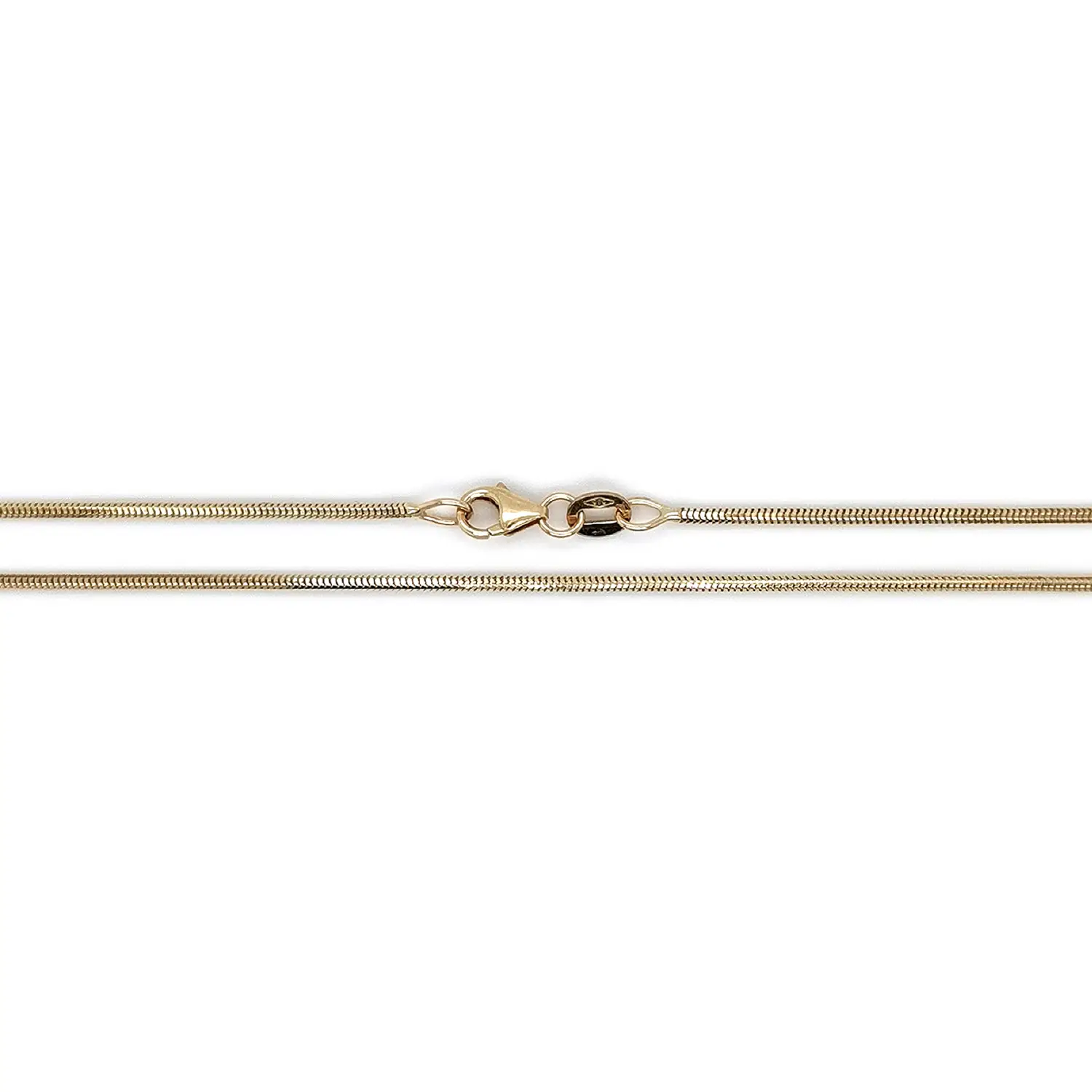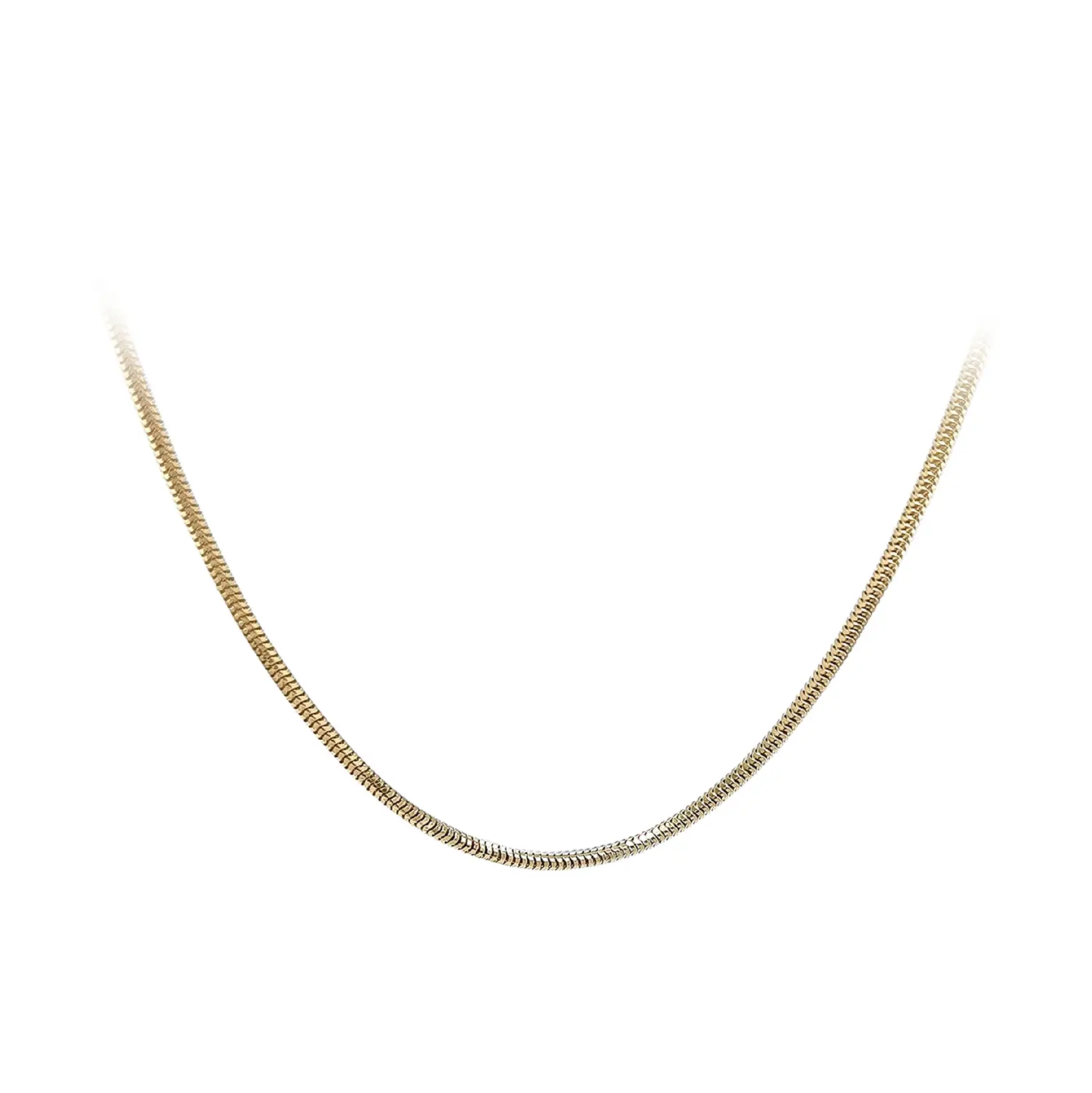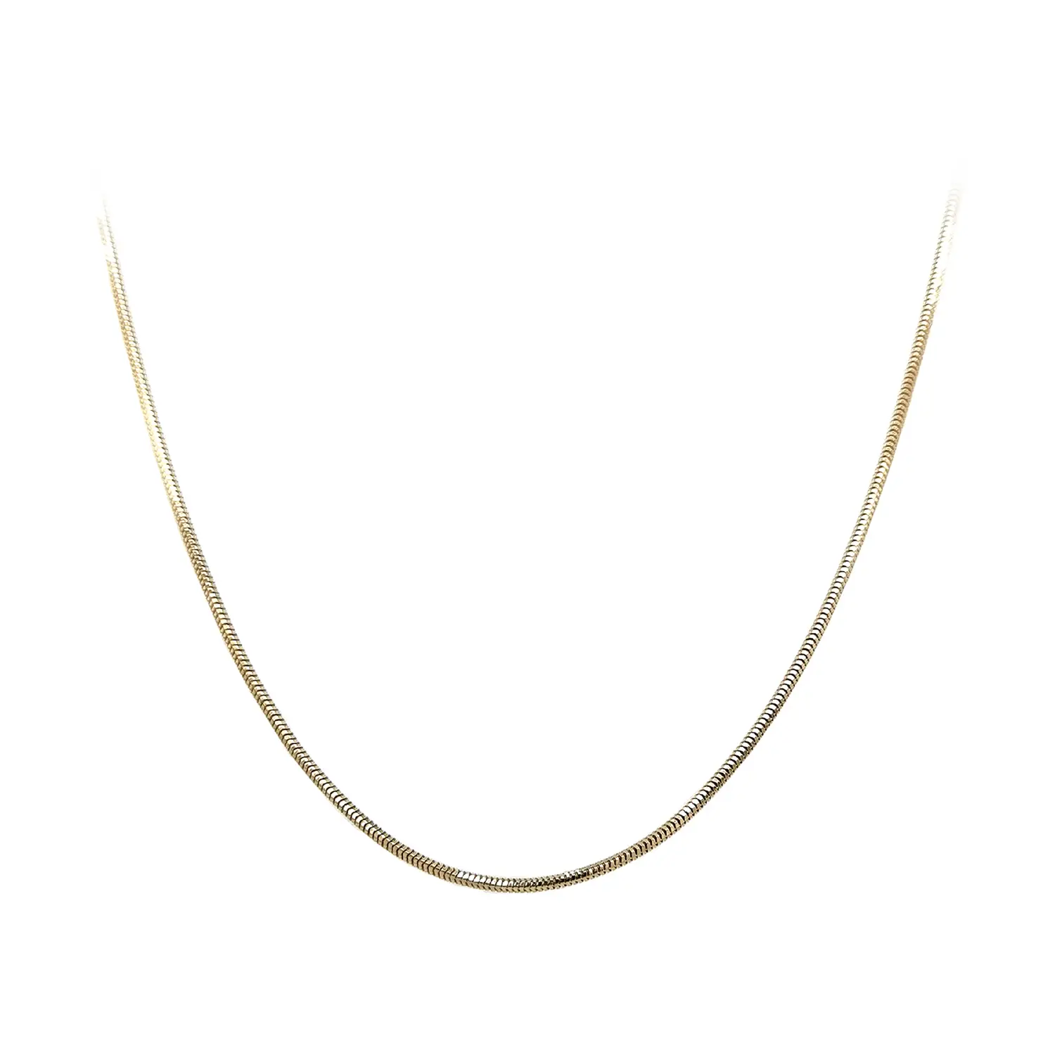 Die goldene Schlangenkette begeistert mit ihrer glatten, durchgehenden Struktur, die sich elegant an den Hals schmiegt und einen feinen, luxuriösen Glanz erzeugt. Durch die charakteristische Schlangenform wirkt sie außergewöhnlich weich und angenehm zu tragen, während das minimalistische Design dem Schmuckstück eine moderne Eleganz verleiht. Die zarte Breite von 1,20 mm betont den dezenten Charakter, ohne an Ausdruckskraft zu verlieren.