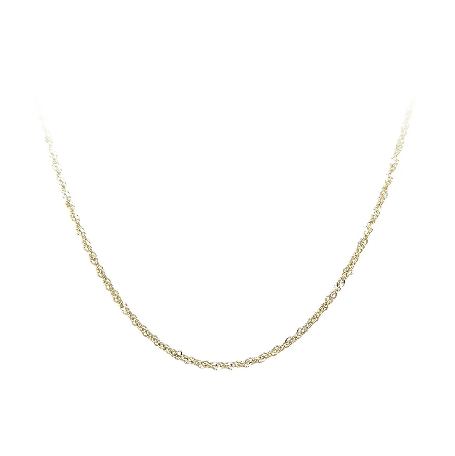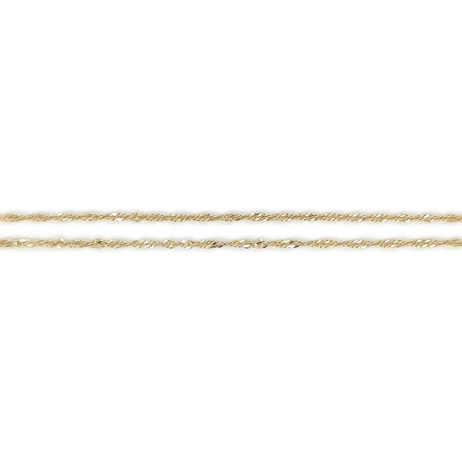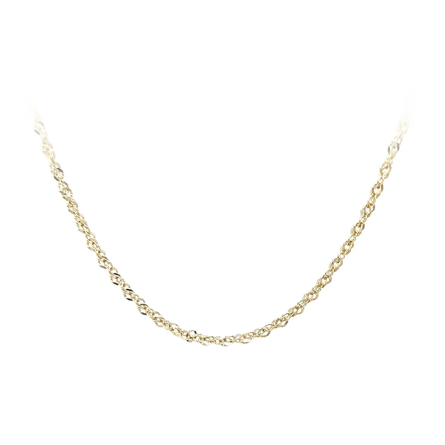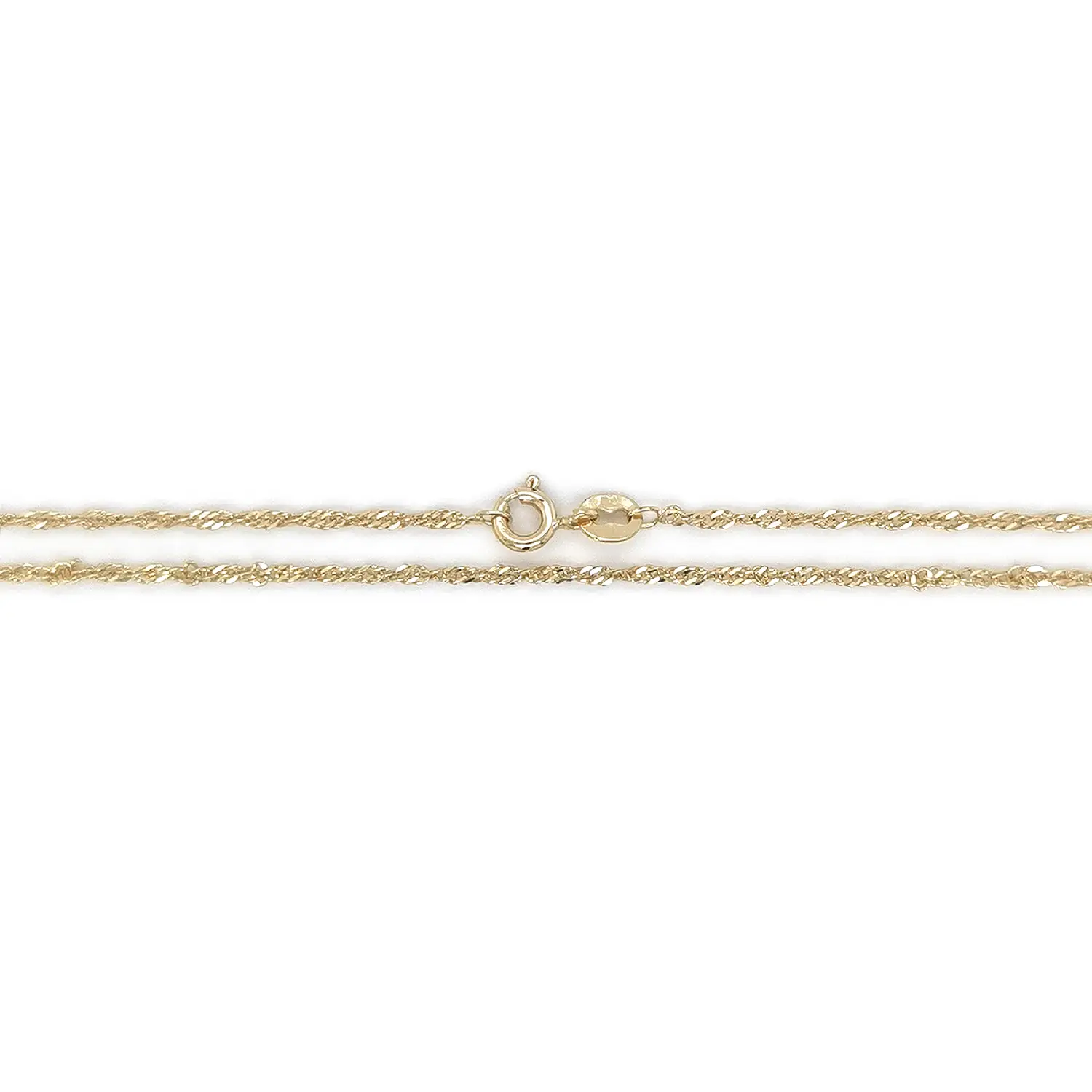 Diese Goldkette im Singapur-Muster besticht durch ihre fein gedrehte Struktur, die das Licht wunderschön reflektiert und dem Schmuckstück einen lebendigen, eleganten Glanz verleiht. Die präzise gearbeiteten Glieder wirken leicht und edel, während die Breite von 1,60 mm für ein ausgewogenes Erscheinungsbild sorgt – präsent, aber dennoch dezent für den Alltag.